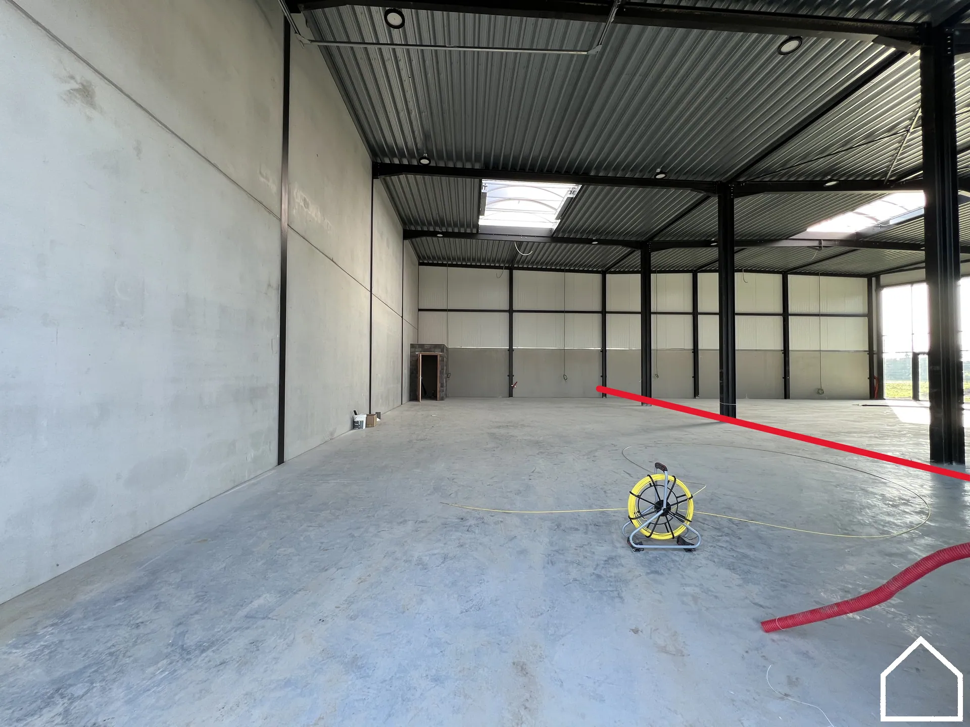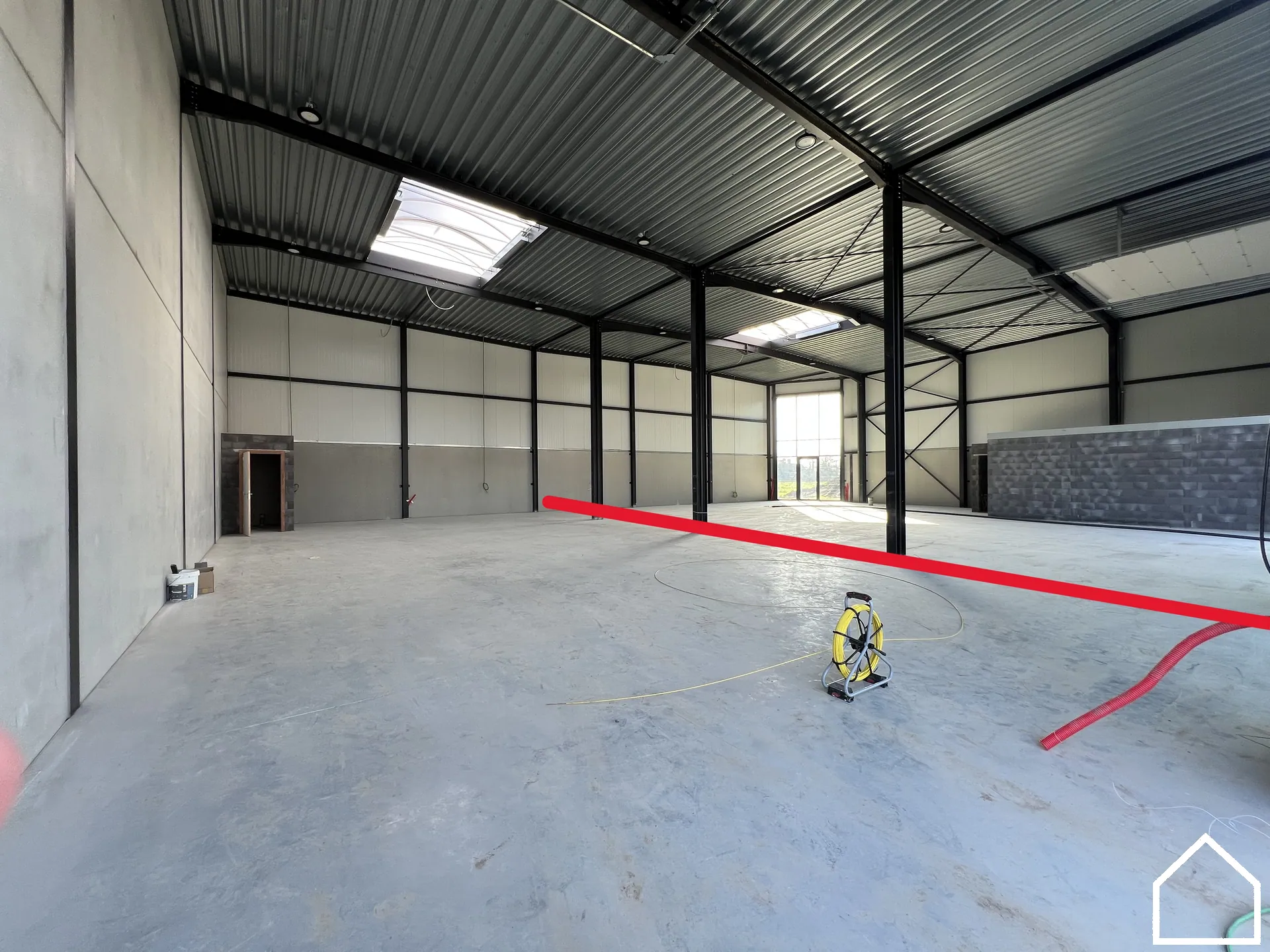 De unit beschikt over 3 privatieve parkeerplaatsen en is vlot toegankelijk via een elektrische sectionaalpoort van 4,5 m hoog en 4 m breed. Dankzij de vrije hoogte van de poort van 6,62 m is het gebouw ook geschikt voor hogere voertuigen of grotere opslagvolumes. Het gebouw is kwalitatief afgewerkt met vloerisolatie en dakisolatie van 120 mm en muurisolatie van 100 mm, wat zorgt voor een energiezuinige en comfortabele werkomgeving.