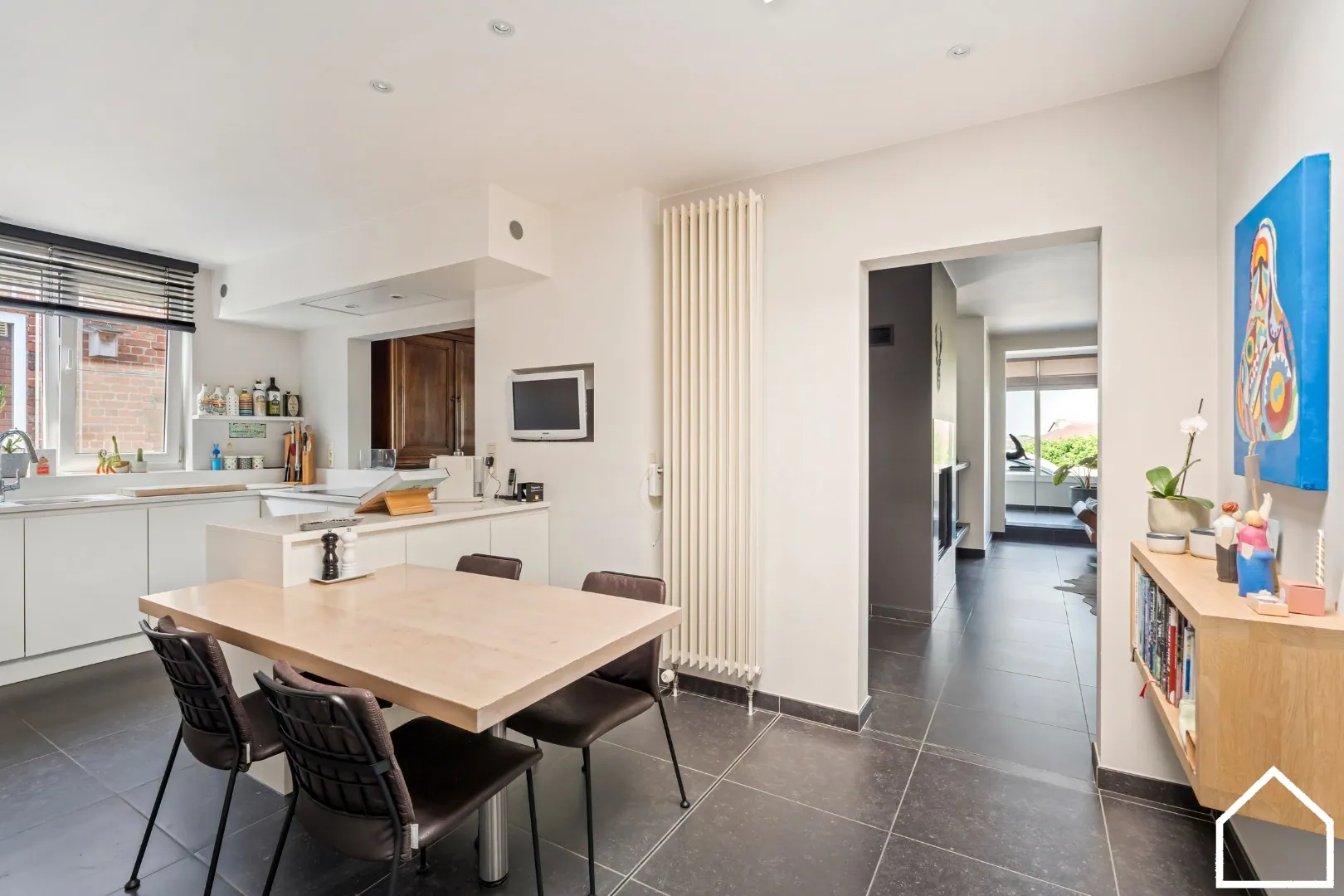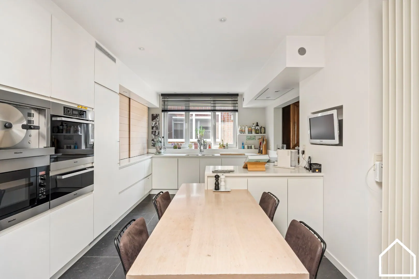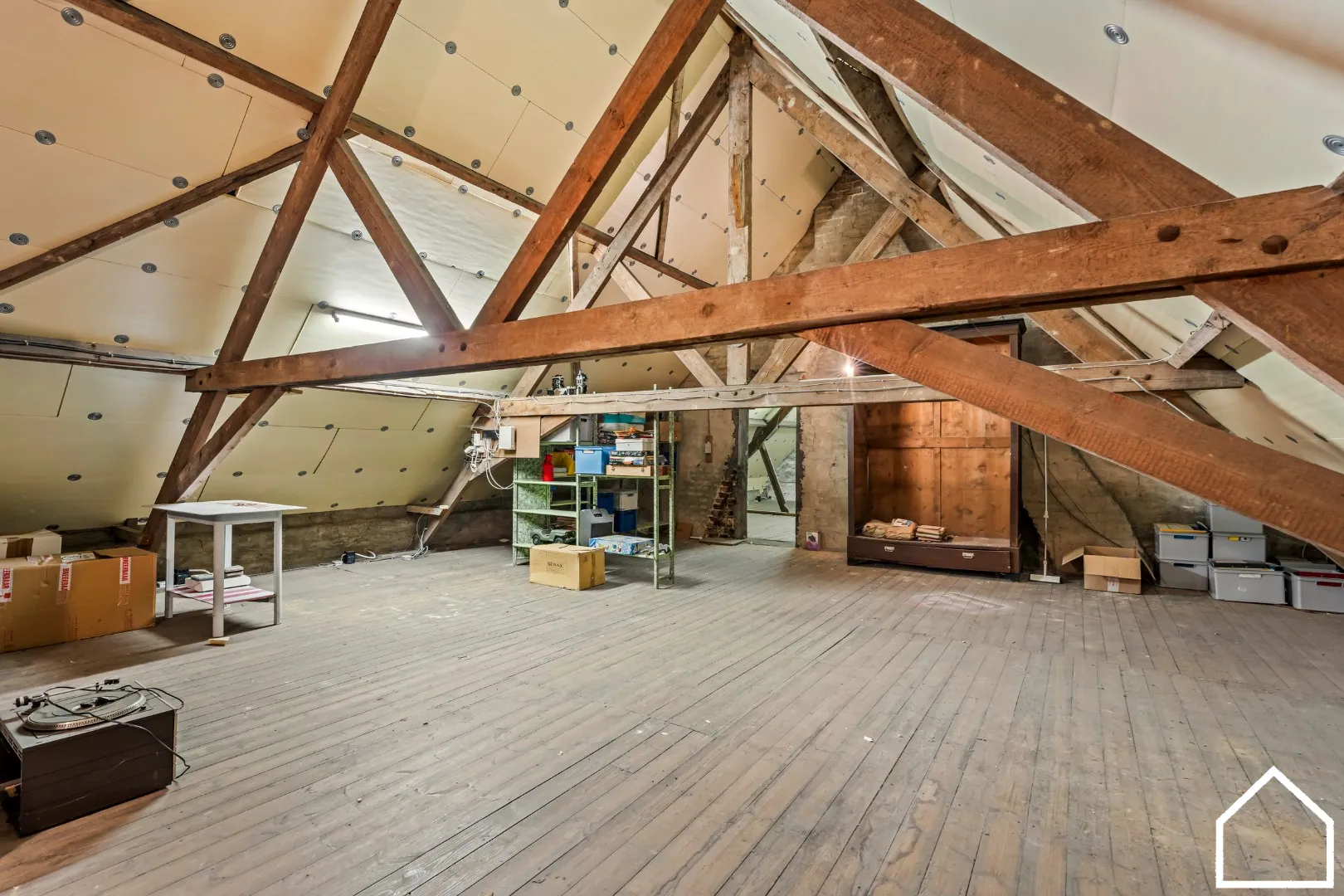 Appartement boven de winkel bestaande uit een ruime living met houten haard (70m²) - volledig uitgeruste keuken (19m²) met vaatwas, steamer, microgolf, heteluchtoven, bordenwarmhouder, frigo, inductiekookplaat (toestellen Miele) - zonnig terras (24m²) - tuin (125m²) - koer (130m²) - apart toilet - badkamer met hoekbad, douchecel en dubbel lavabomeubel met spiegelkast (8.30m²) - 4 ruime slaapkamers (22m² - 16.50m² - 16m² - 12.85m²) - strijkkamer met inbouwkasten (8m²) - geïsoleerde zolder (81m²)