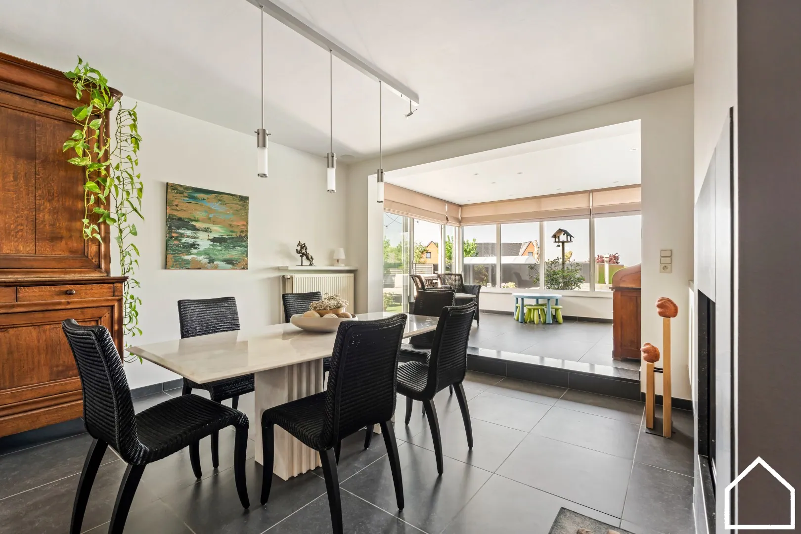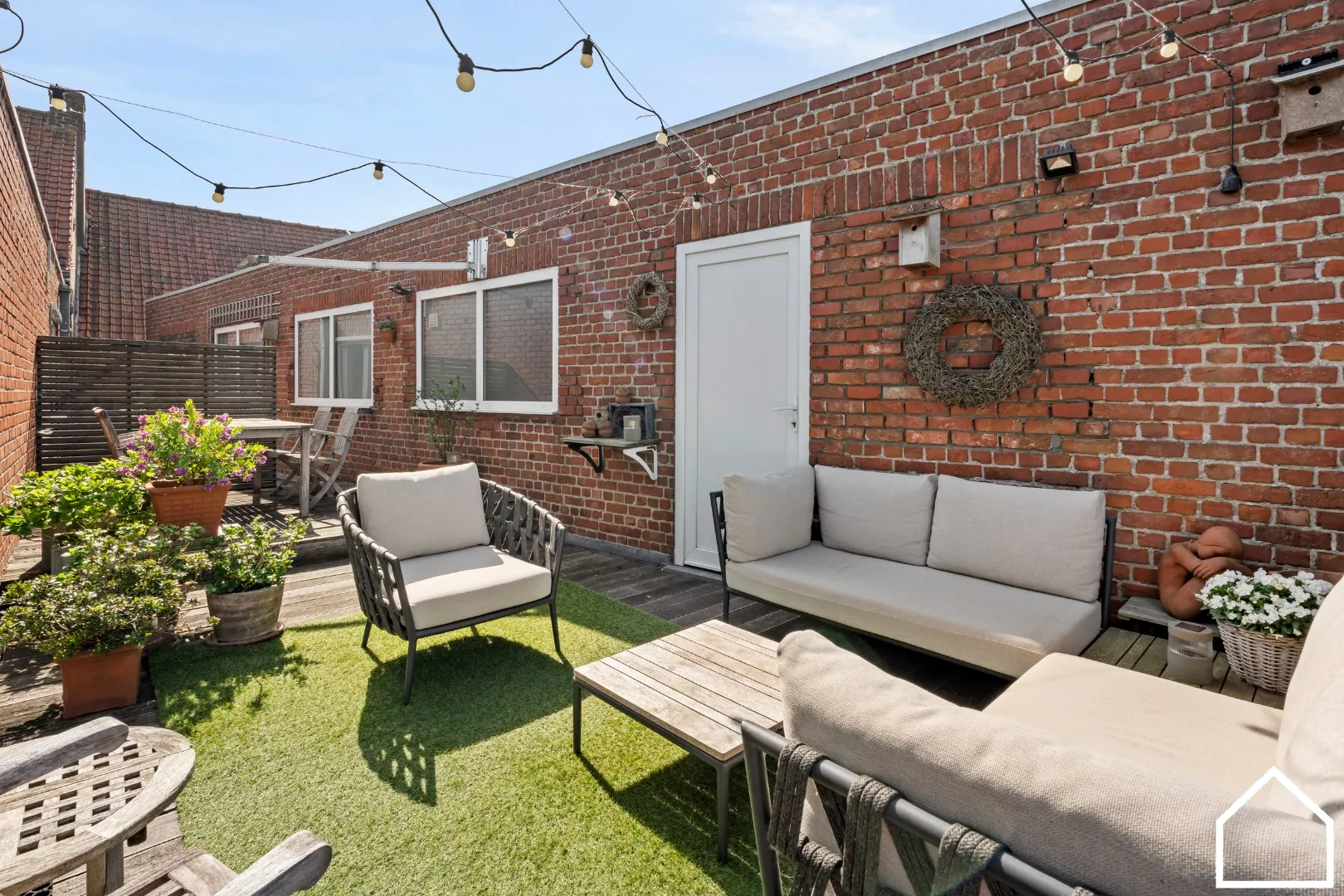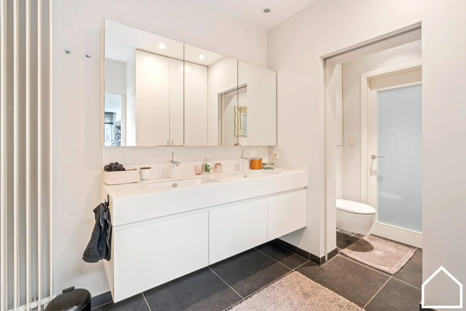 Appartement boven de winkel bestaande uit een ruime living met houten haard (70m²) - volledig uitgeruste keuken (19m²) met vaatwas, steamer, microgolf, heteluchtoven, bordenwarmhouder, frigo, inductiekookplaat (toestellen Miele) - zonnig terras (24m²) - tuin (125m²) - koer (130m²) - apart toilet - badkamer met hoekbad, douchecel en dubbel lavabomeubel met spiegelkast (8.30m²) - 4 ruime slaapkamers (22m² - 16.50m² - 16m² - 12.85m²) - strijkkamer met inbouwkasten (8m²) - geïsoleerde zolder (81m²)