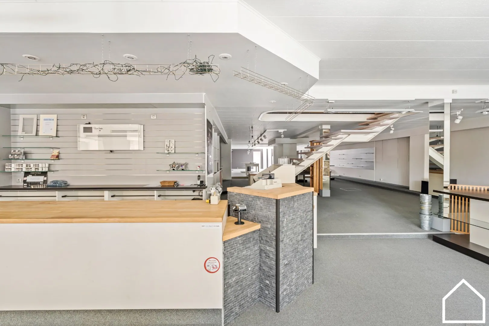 Handelsruimte: hoofdwinkel (220m²) voorzien van een bureel - berging/personeelsruimte (32m²) - sanitaire ruimte - garage (28m²) - stockageruimte/atelier achter de garage in 2 verdiepingen (glv = 70m² en verdiep = 115m²) die vroeger diende als "smesse" - extra winkelruimte met etalage aan de linkerkant van het gebouw (57m²)