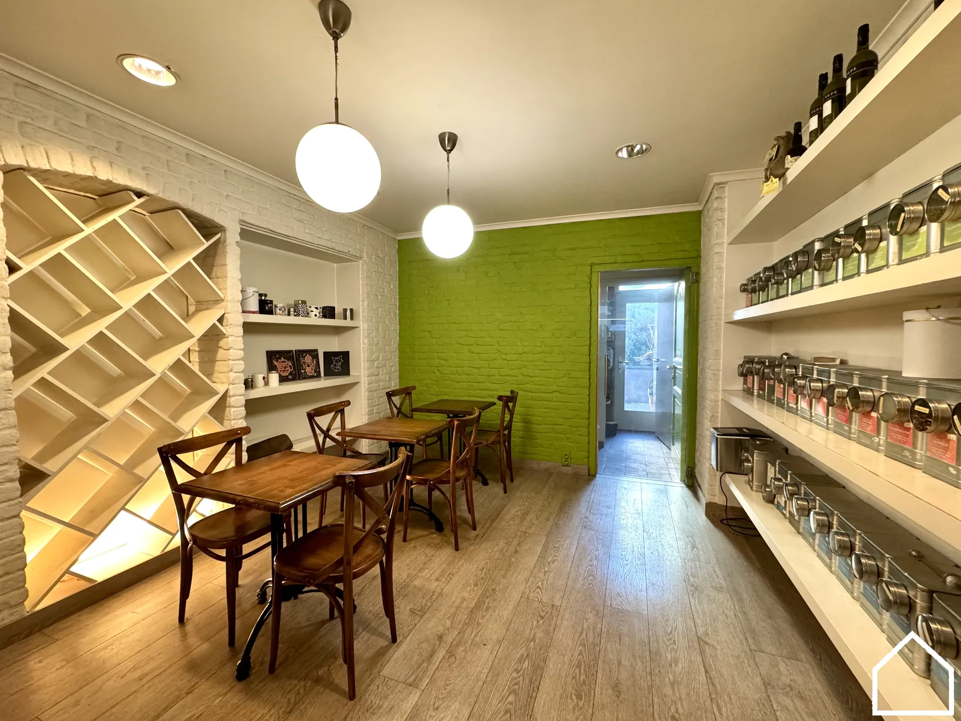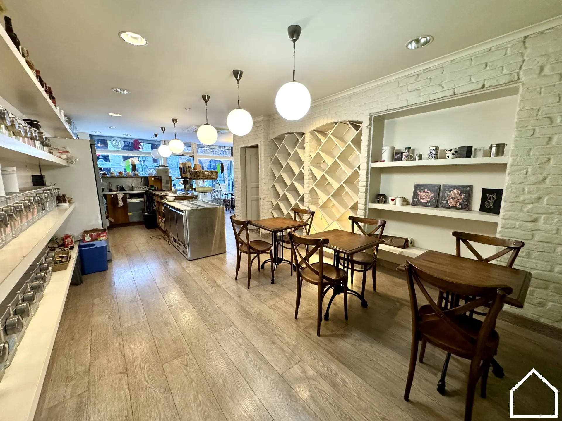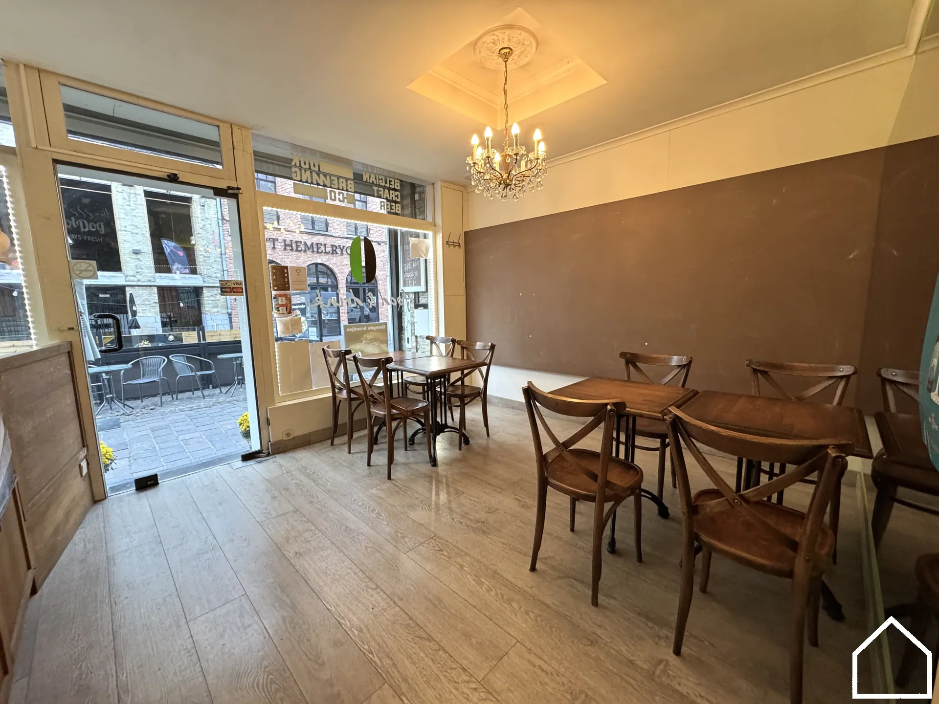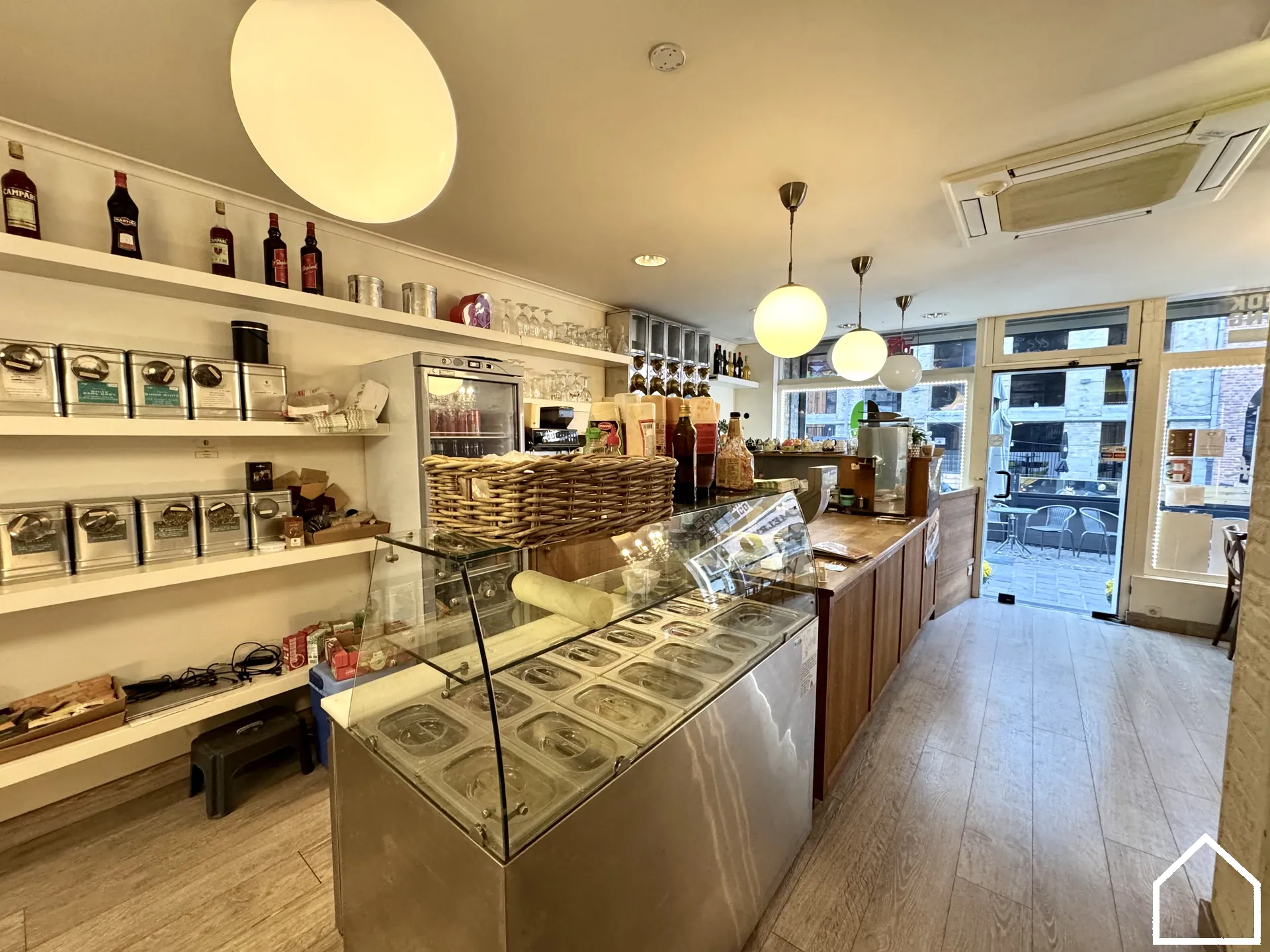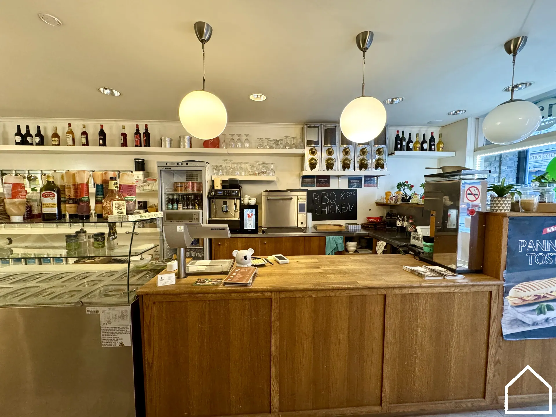 De zaak zelf omvat een buitenterras voor 11 personen aan de straatkant en de binnenruimte waar 14 personen kunnen zitten (38.50m²).