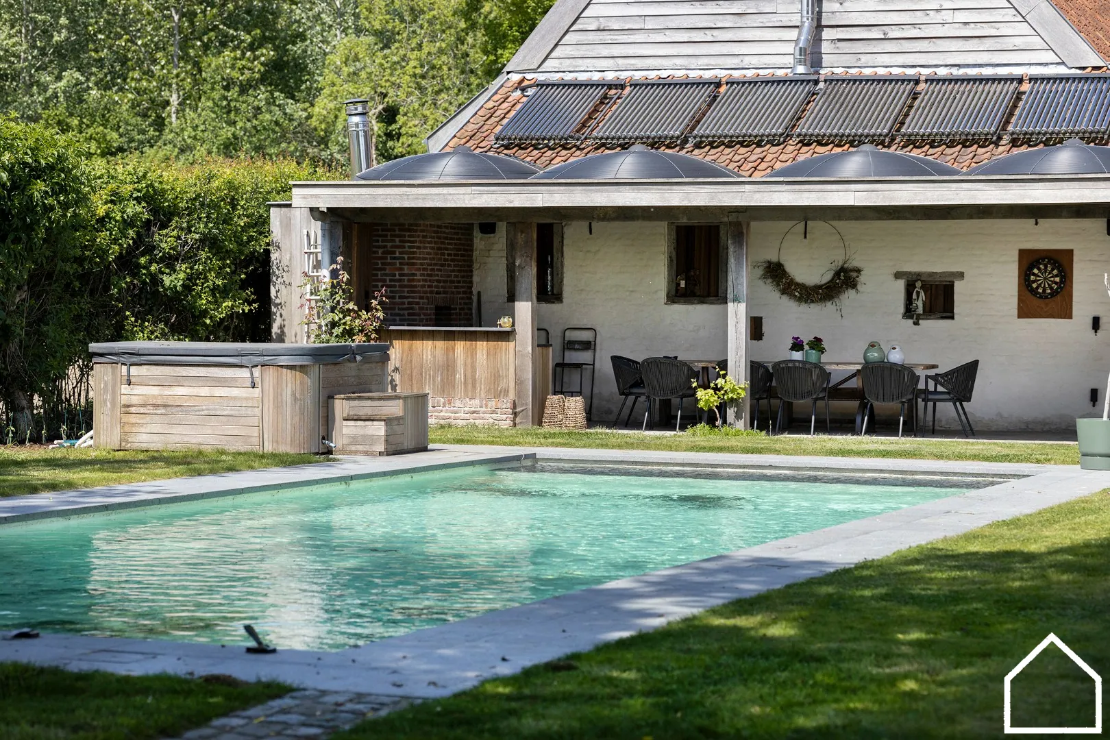 De vakantiewoningen kunnen 26 personen herbergen en werden volledig gerenoveerd. De vroegere boerderij werd omgevormd tot een gezellige woning met maar liefst 5 slaapkamers en is voorzien van alle moderne snufjes! Het dak van de schuur werd reeds gerenoveerd en dient als opbergplaats.