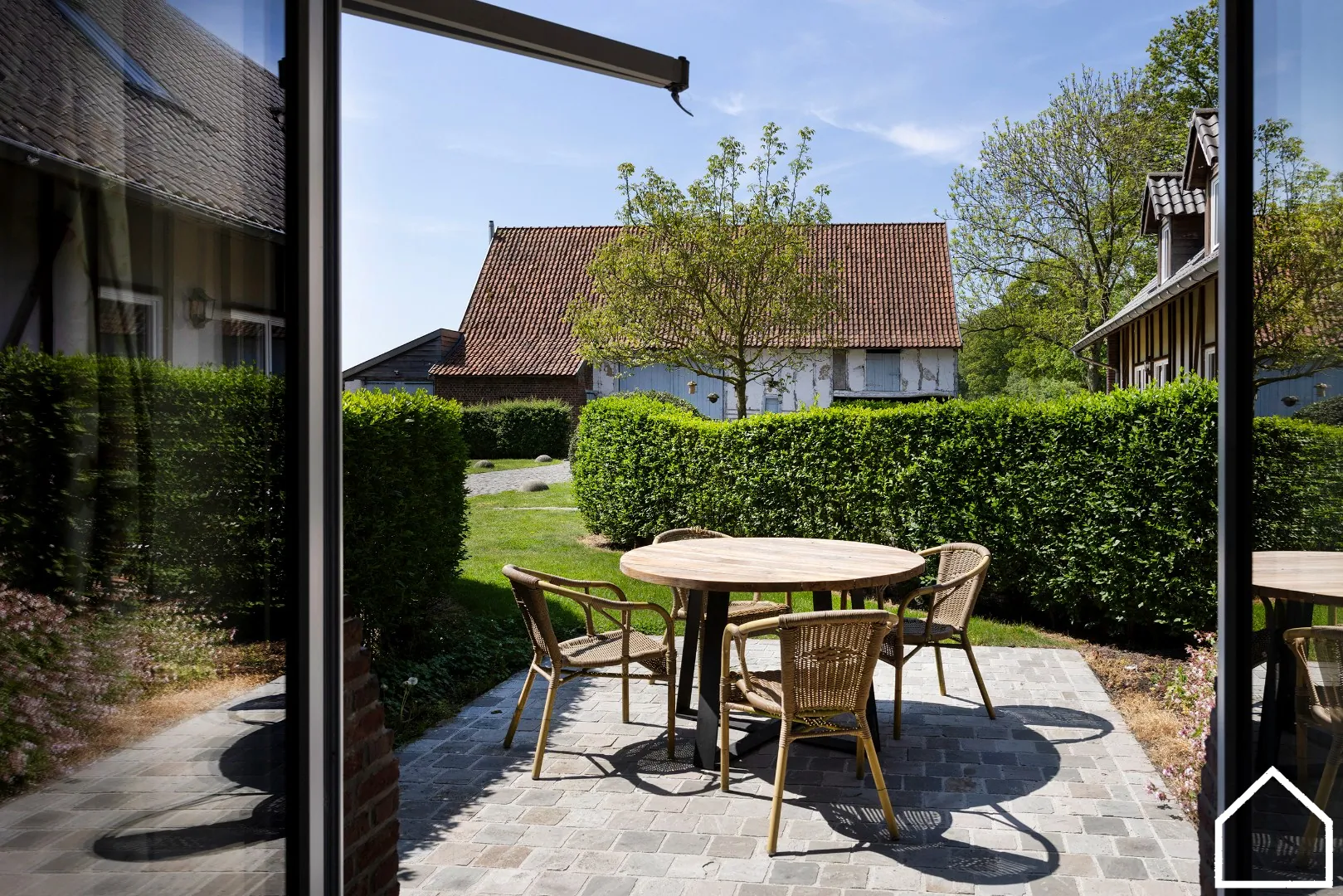 Net over de Franse grens nabij Poperinge werd een bouwvallige hoeve getransformeerd naar een prachtig domein "La ferme du Bucheron" bestaande uit een landhuis, 5 vakantiewoningen een Estaminet en een prachtige schuur! Het domein is gelegen in de Groenstroate 1 te Steenvoorde.