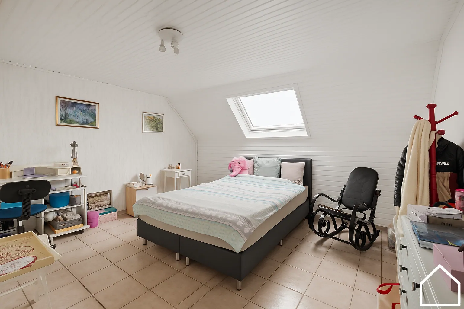 Verdieping 1: nachthal (20 m²), slaapkamers 3,4 en 5 (27m² - 20m² - 15 m²) en een zolderruimte met een oppervlakte van 47 m² waar gemakkelijk nog een extra slaapkamer en badkamer kan bijgemaakt worden of 2 extra slaapkamers