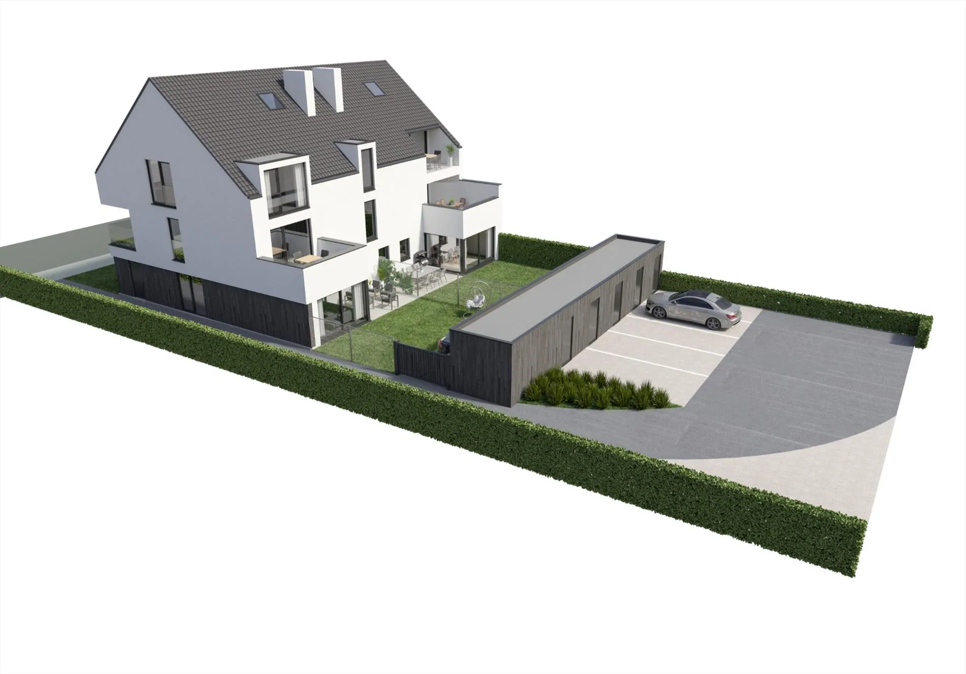 Alle appartementen hebben 2 of 3 slaapkamers, 1 of 2 terrassen of een tuin en een ruime buitenberging + carport.