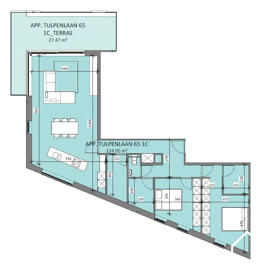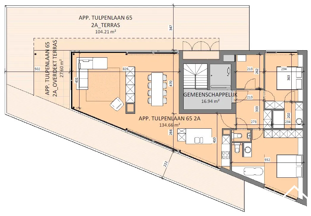 420.000€ penthouse (2 slaapkamers) - excl. kosten
