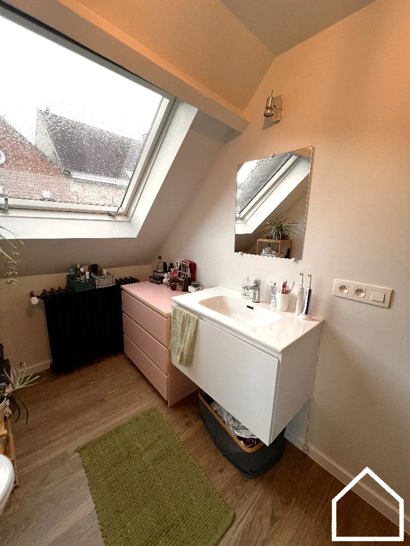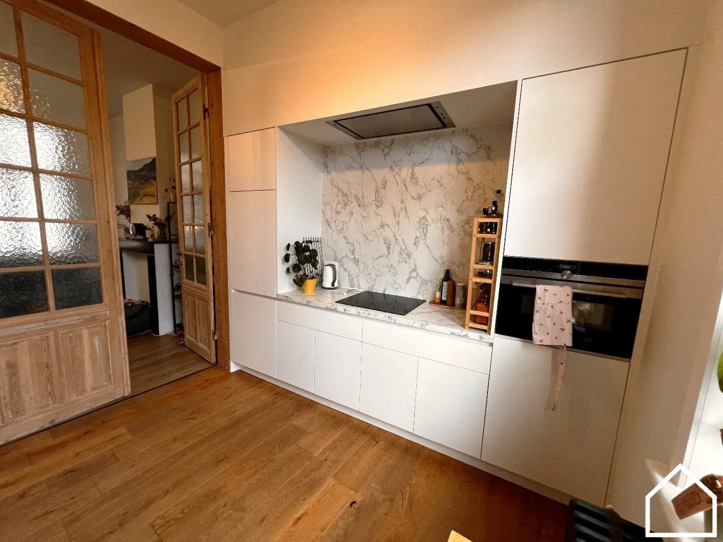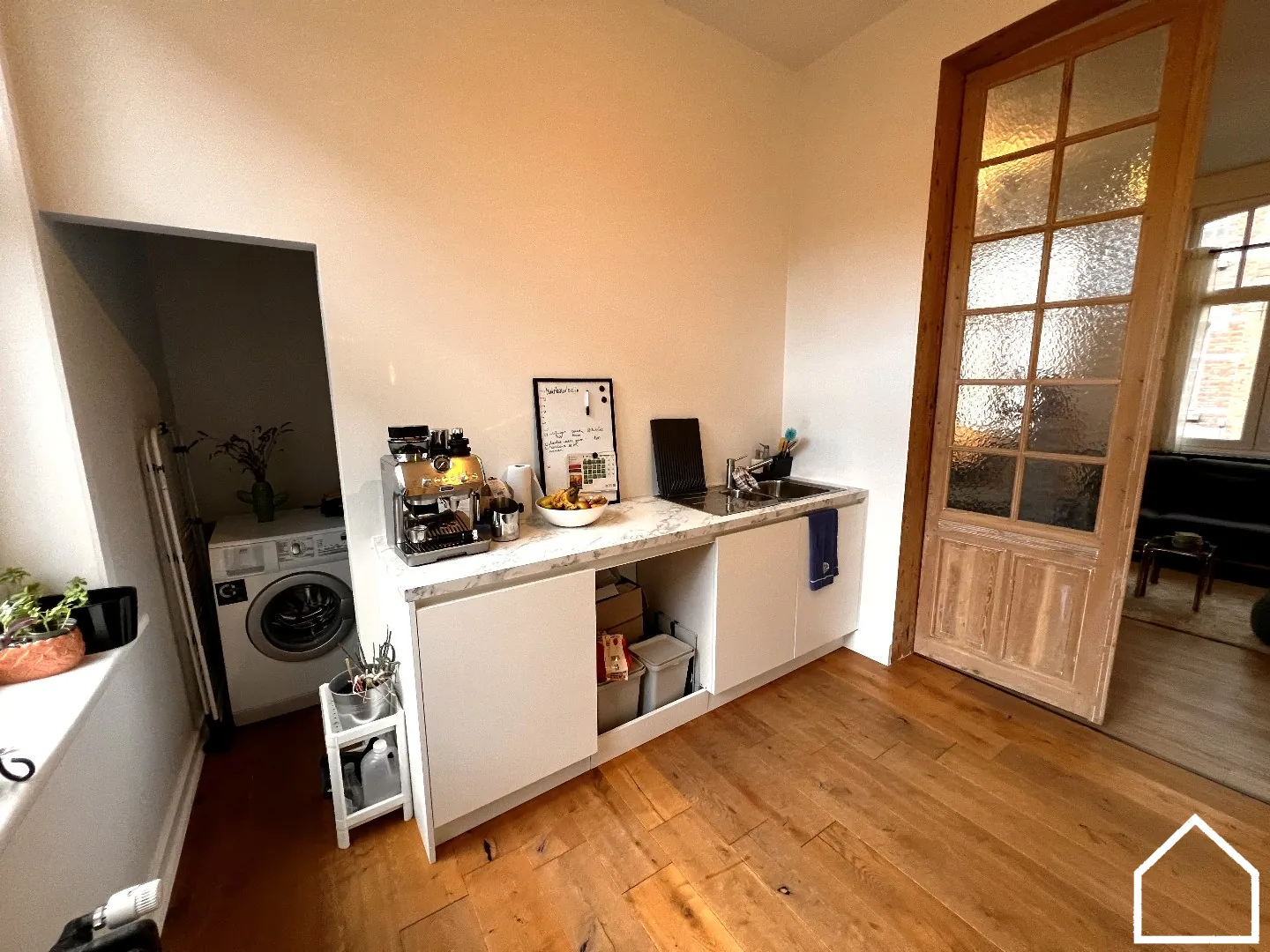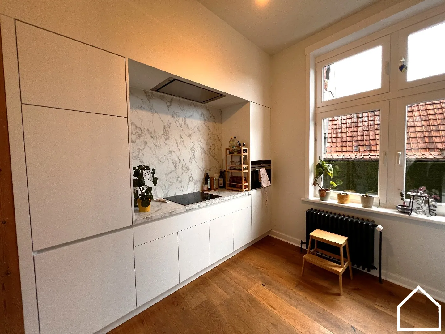 Indeling: bij het binnenkomen word je verwelkomd in een lichtrijke leefruimte met een authentieke deur die toegang geeft tot de uitgeruste keuken (inductiekookplaat, koelkast, combi-oven). Verder vind je een praktische bergruimte met aansluiting voor de wasmachine, een apart toilet, een moderne badkamer met lavabomeubel, douche en extra toilet en een zeer ruime slaapkamer.