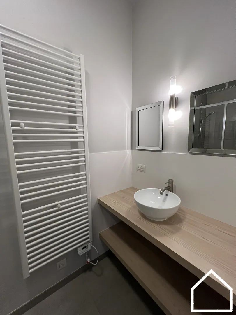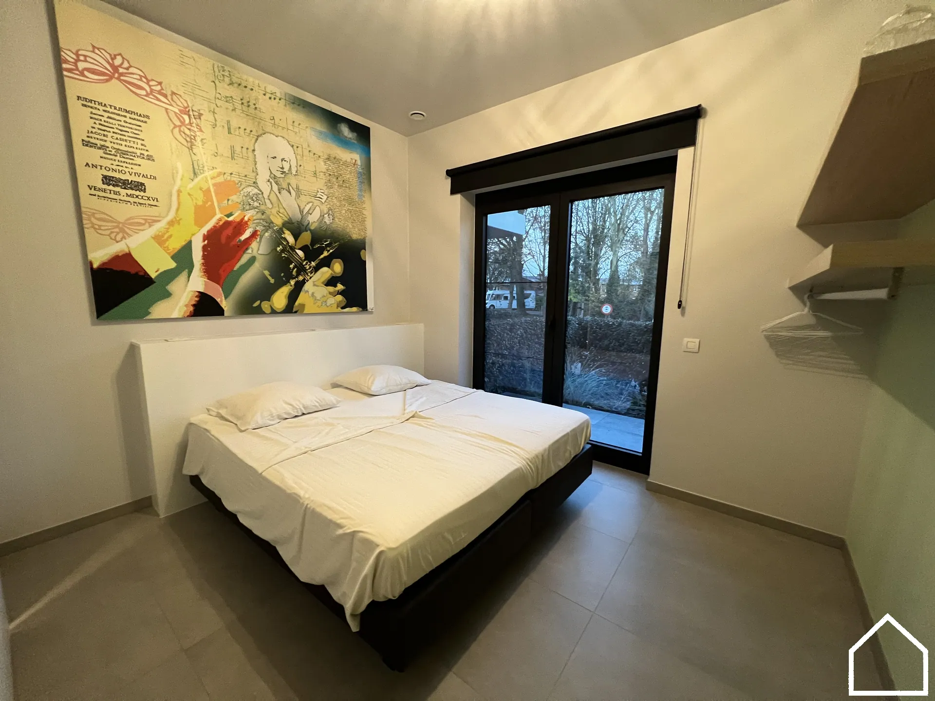 De woning beschikt over één slaapkamer die rechtstreeks toegang biedt tot de badkamer én die een extra klein terrasje heeft, een fijn privéplekje om even tot rust te komen.