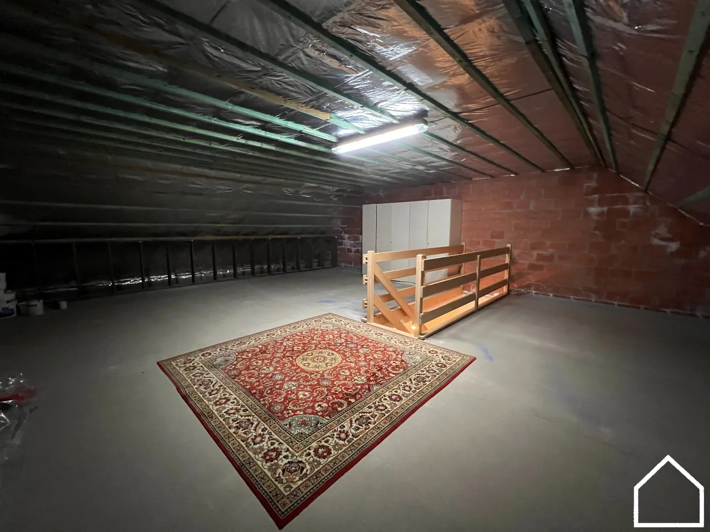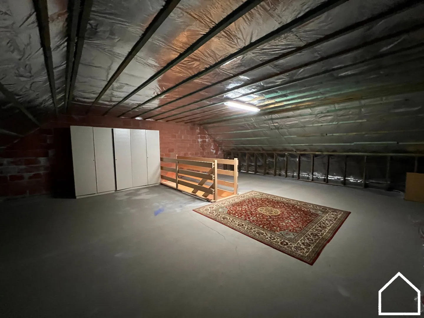 Op het bovenste verdiep bevind zich een zeer ruime, volledig geïsoleerde zolder die toegang heeft via een vaste trap.