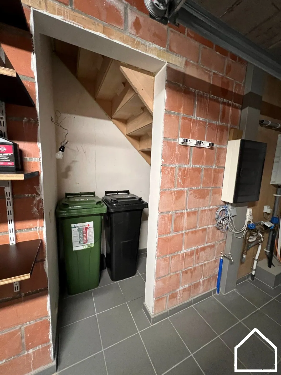 Indeling: Vanuit de inkomhal heb je toegang tot de ruime leefruimte met open, volledig uitgeruste keuken met spoeleiland, vaatwasser, oven, elektrische kookplaat, koelkast en diepvries. Vanuit de keuken heb je zicht op de ruime, afgesloten tuin met terras en tuinhuis. Op het gelijkvloers is nog een ruime garage en een apart toilet aanwezig.