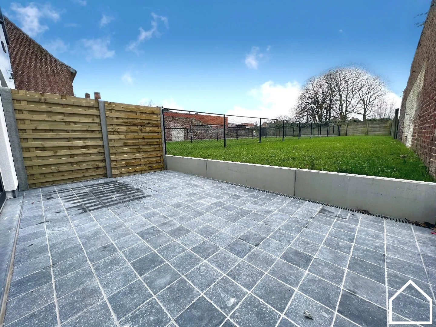 Buiten geniet u van een aangename, zuidwestgerichte tuin waar u de hele namiddag en avond van de zon kan profiteren. Het terras in blauwsteen vormt de ideale plek voor gezellige zomeravonden. Dankzij de doorgang naast de woning is de tuin bovendien vlot bereikbaar.