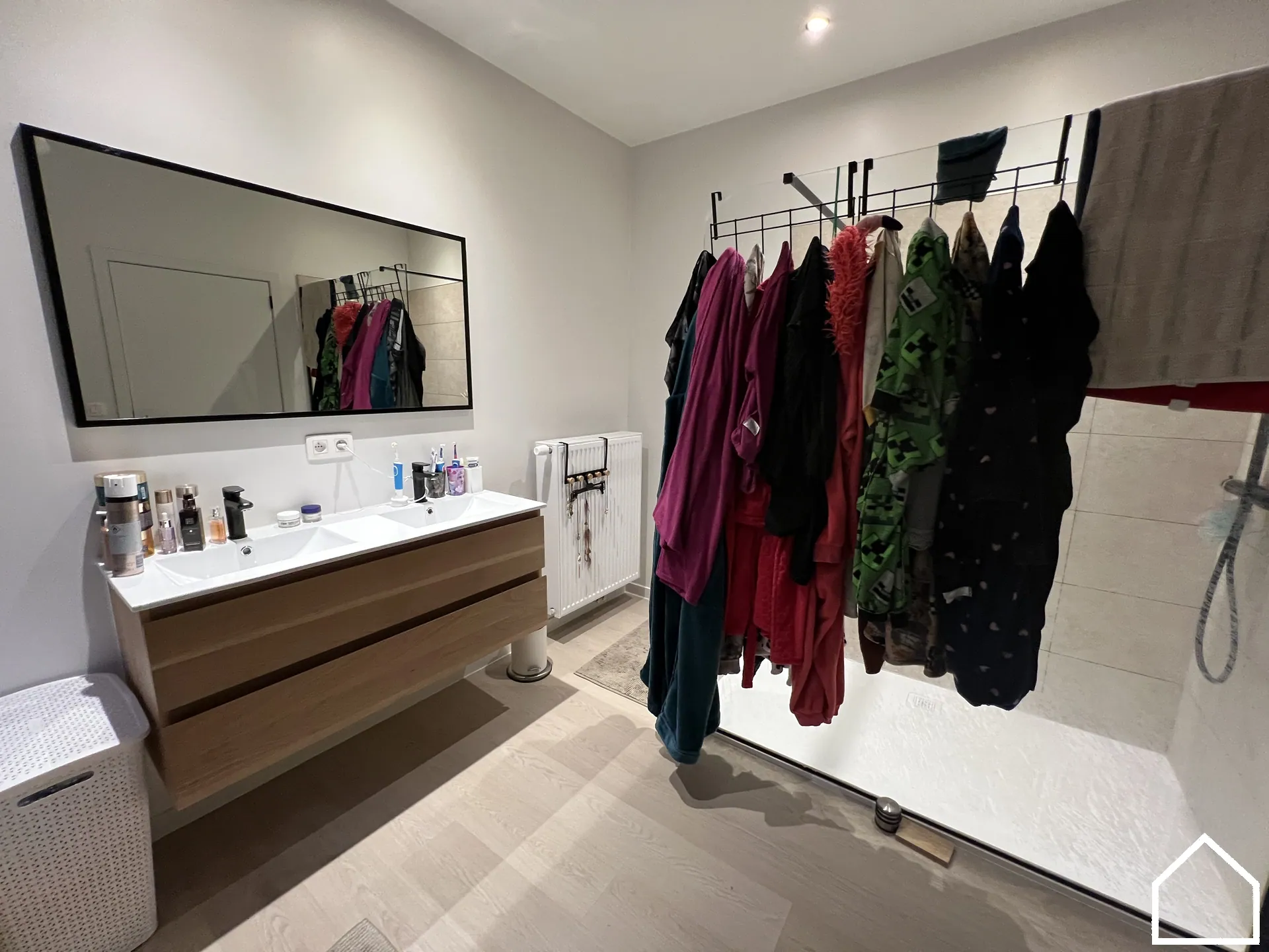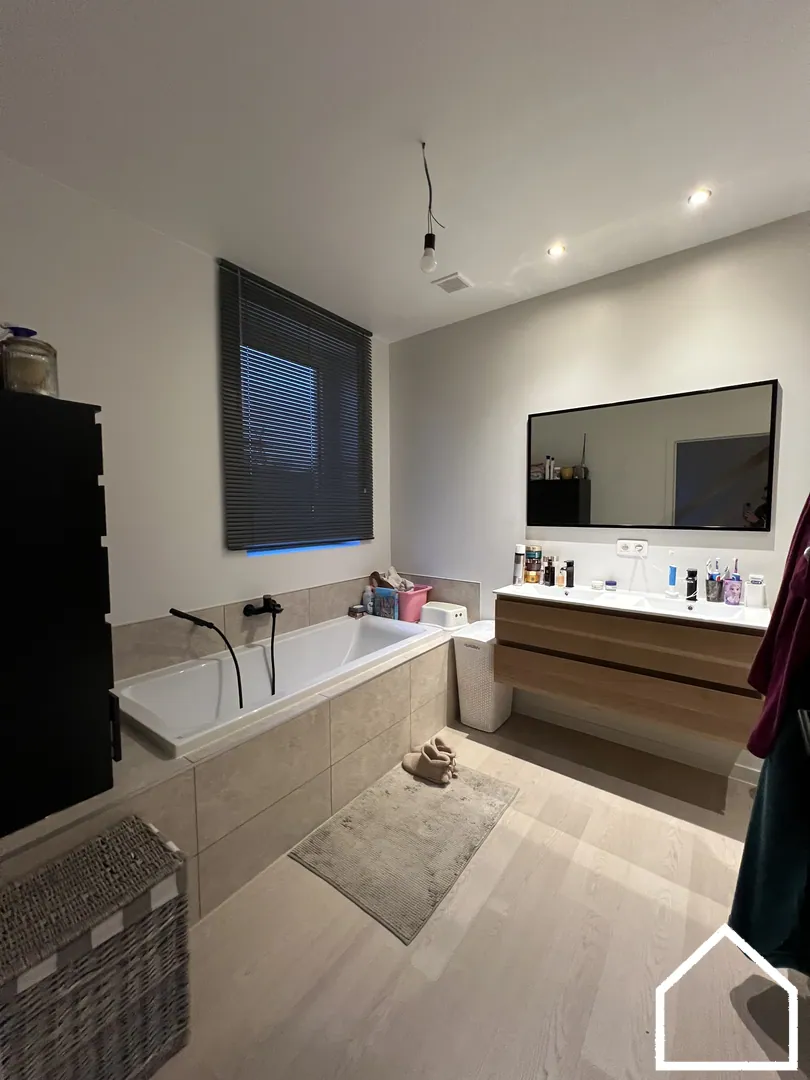Op de eerste verdieping bevinden zich twee ruime slaapkamers en een stijlvolle badkamer, uitgerust met ligbad, inloopdouche en lavabomeubel. Een apart toilet zorgt ook hier voor extra comfort.