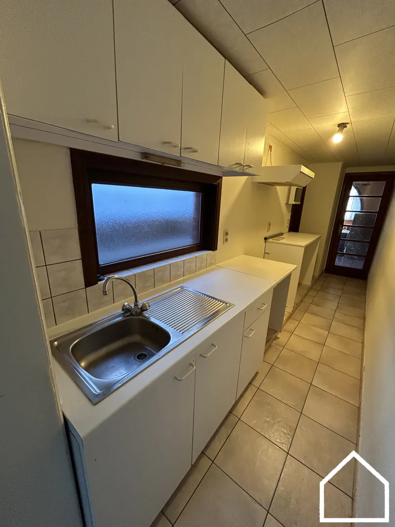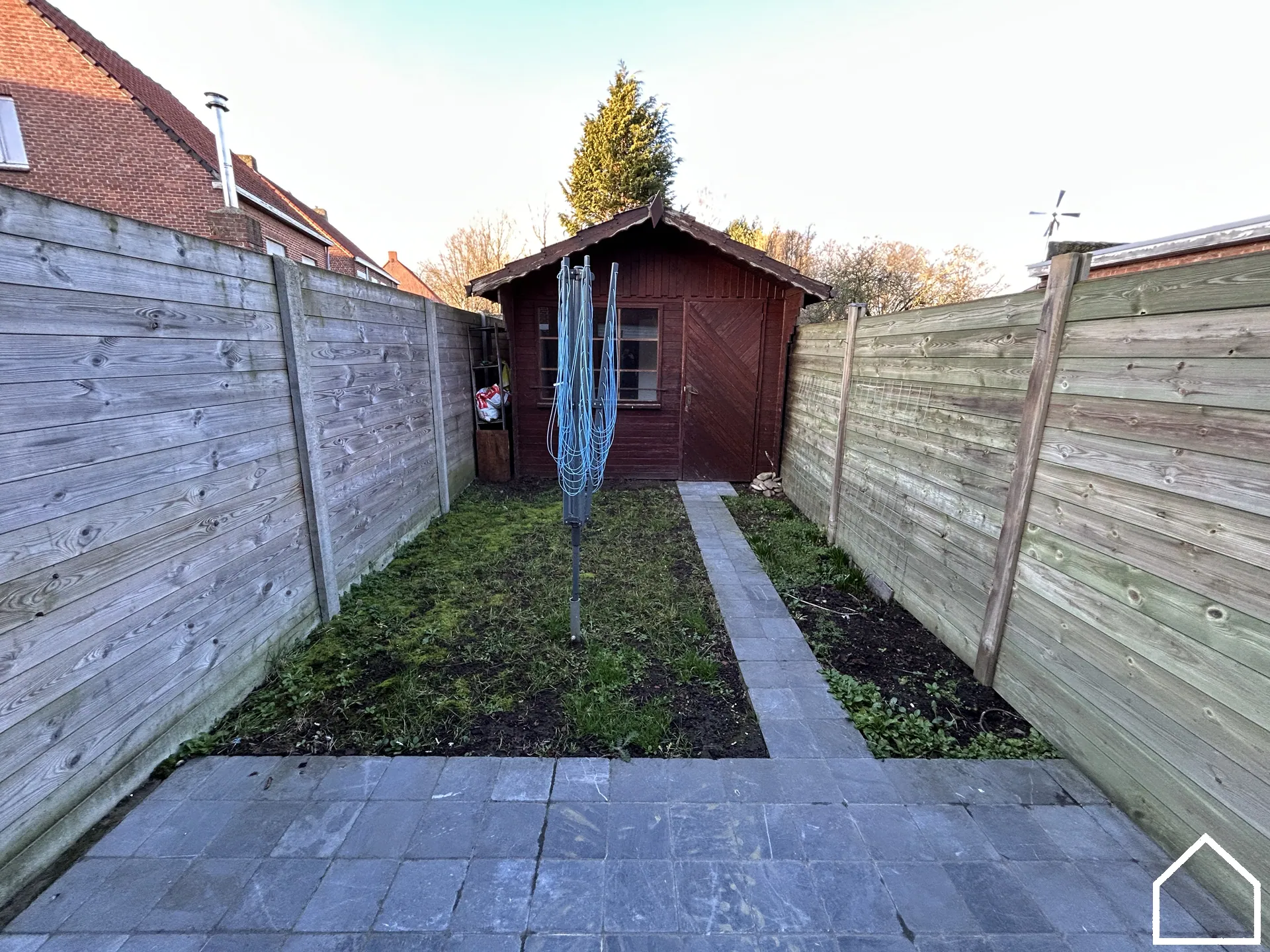 Deze gezellige woning is gelegen in het centrum van Woesten. Ze beschikt over een inkom met een apart gastentoilet. Er is een ruime en lichtrijke leefruimte met aansluitend de keuken (niet uitgerust) met eetruimte. De eetruimte biedt zicht op de tuin met tuinhuis.