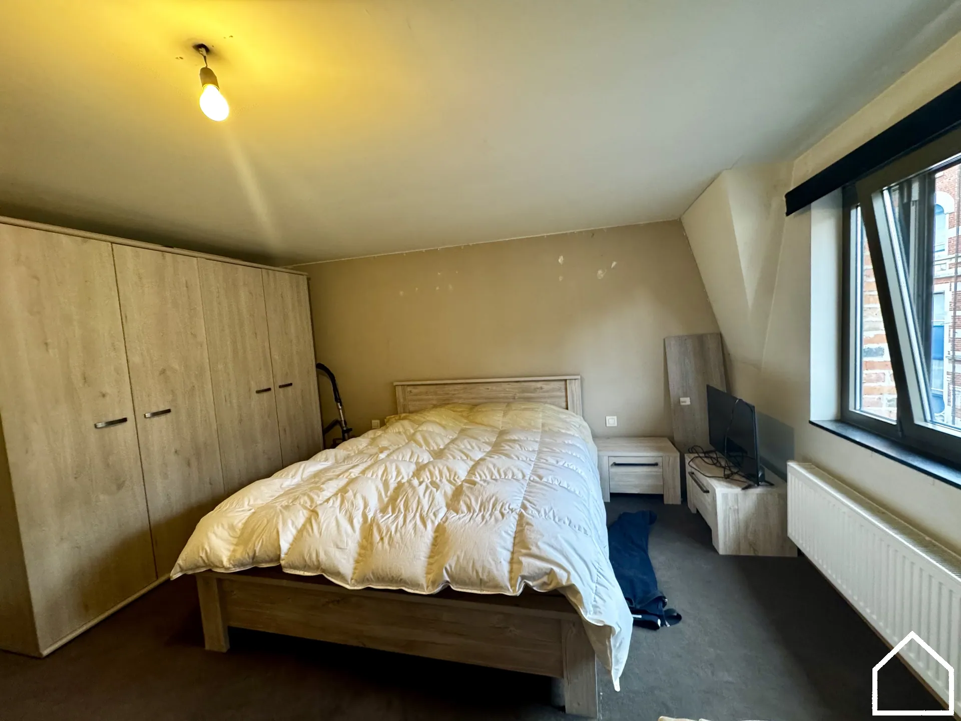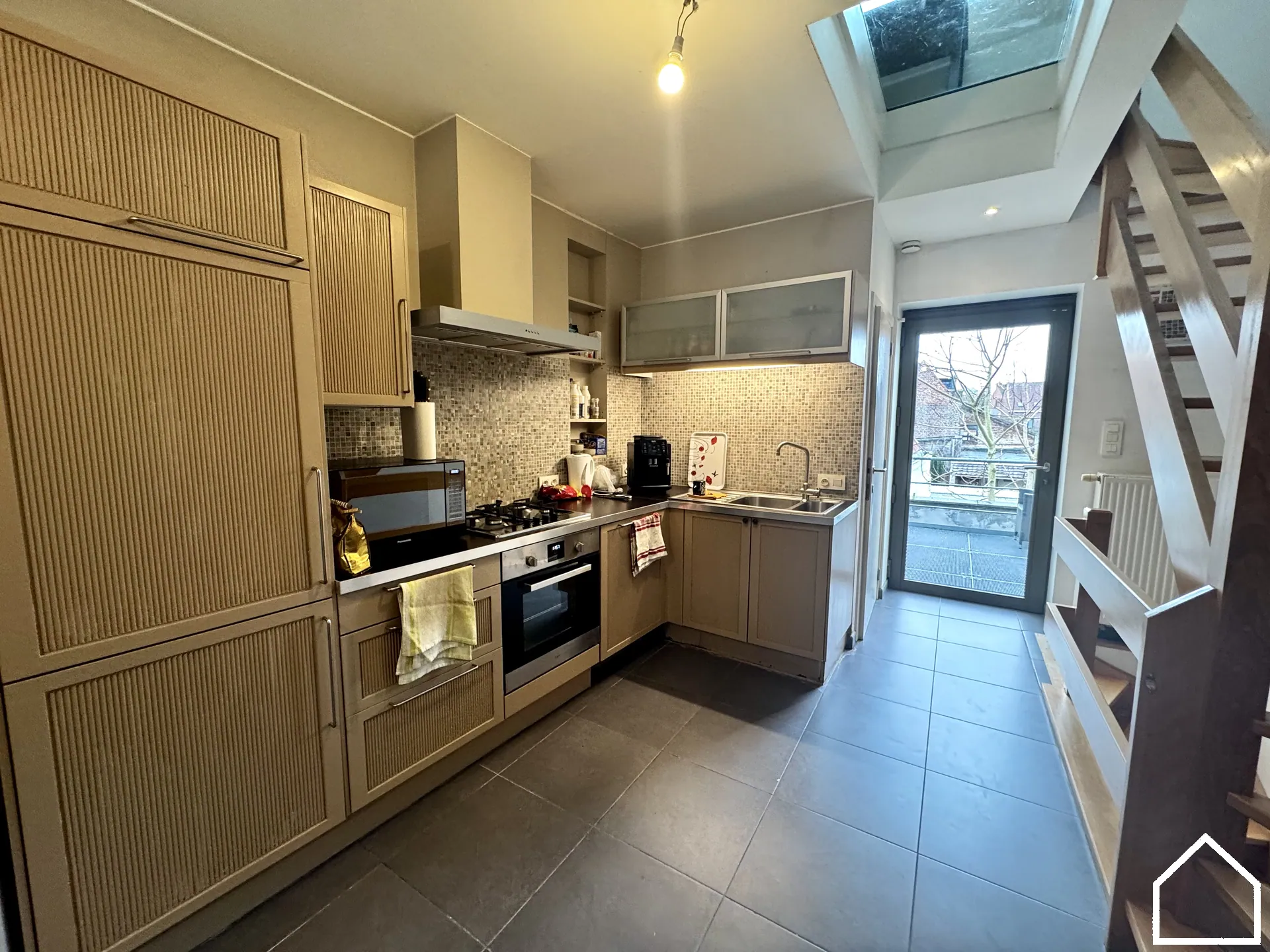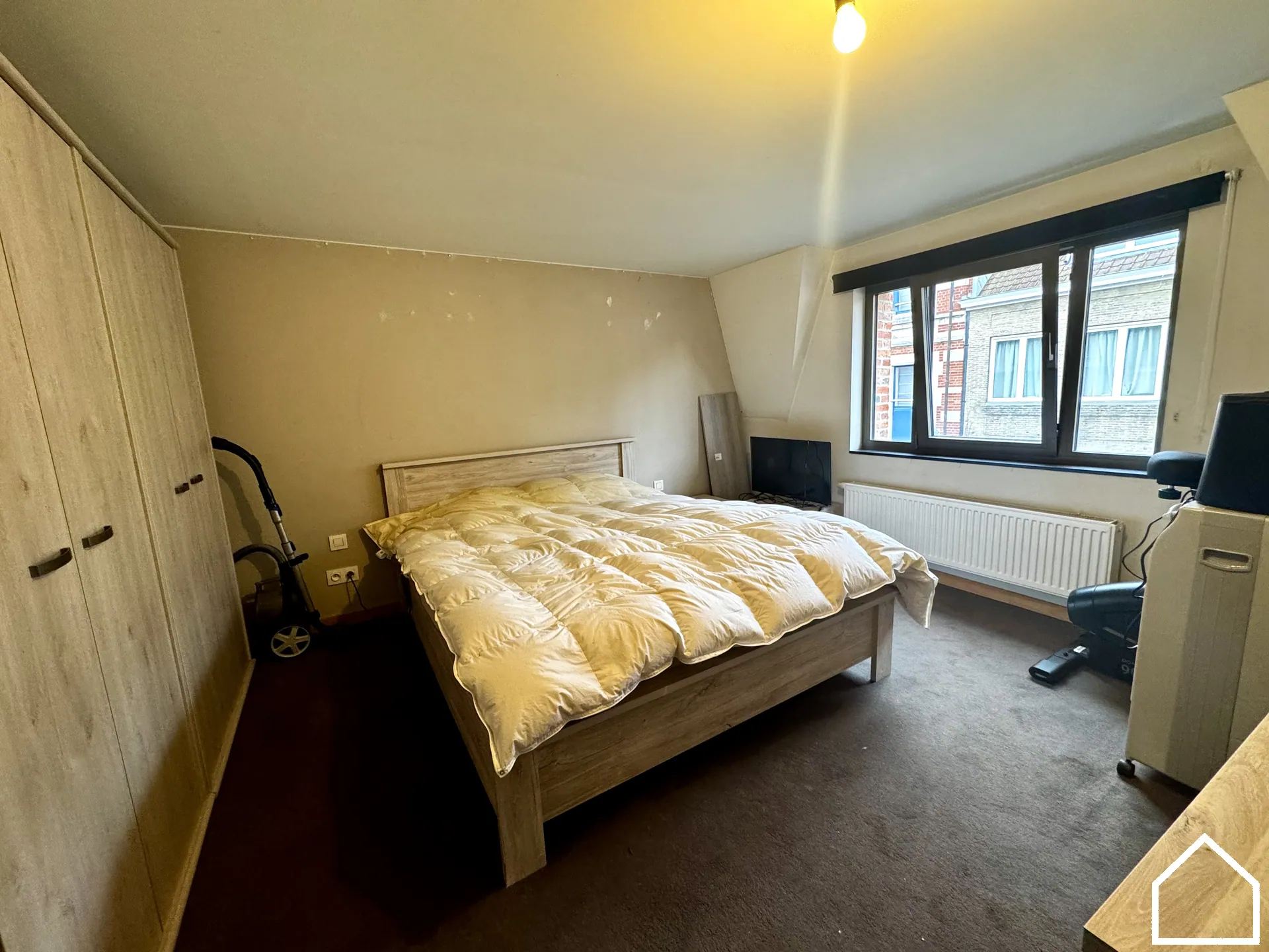 Dit lichtrijke appartement op 200m van de Grote Markt biedt alle comfort voor aangenaam wonen. De ruime leefruimte sluit naadloos aan op de open, volledig ingerichte keuken, voorzien van een vaatwasser, oven, diepvries, koelkast en een kookfornuis op aardgas. Daarnaast is er een aparte bureauruimte, ideaal voor thuiswerk. Er is geen lift aanwezig.