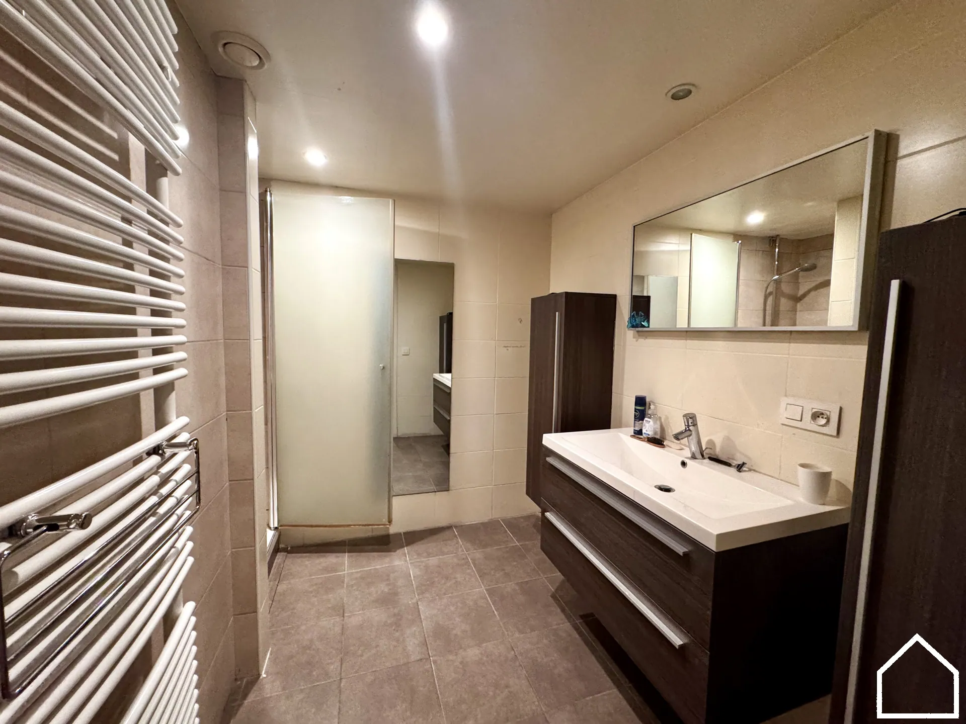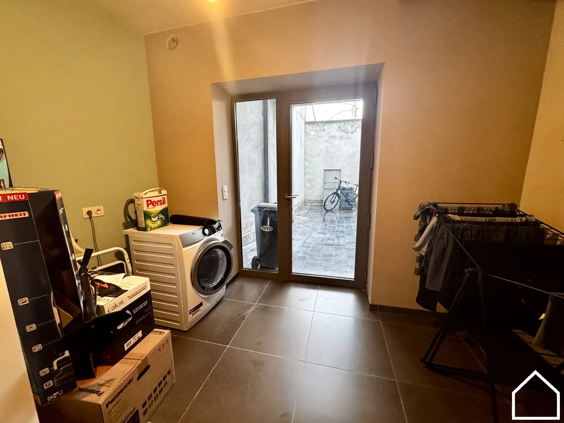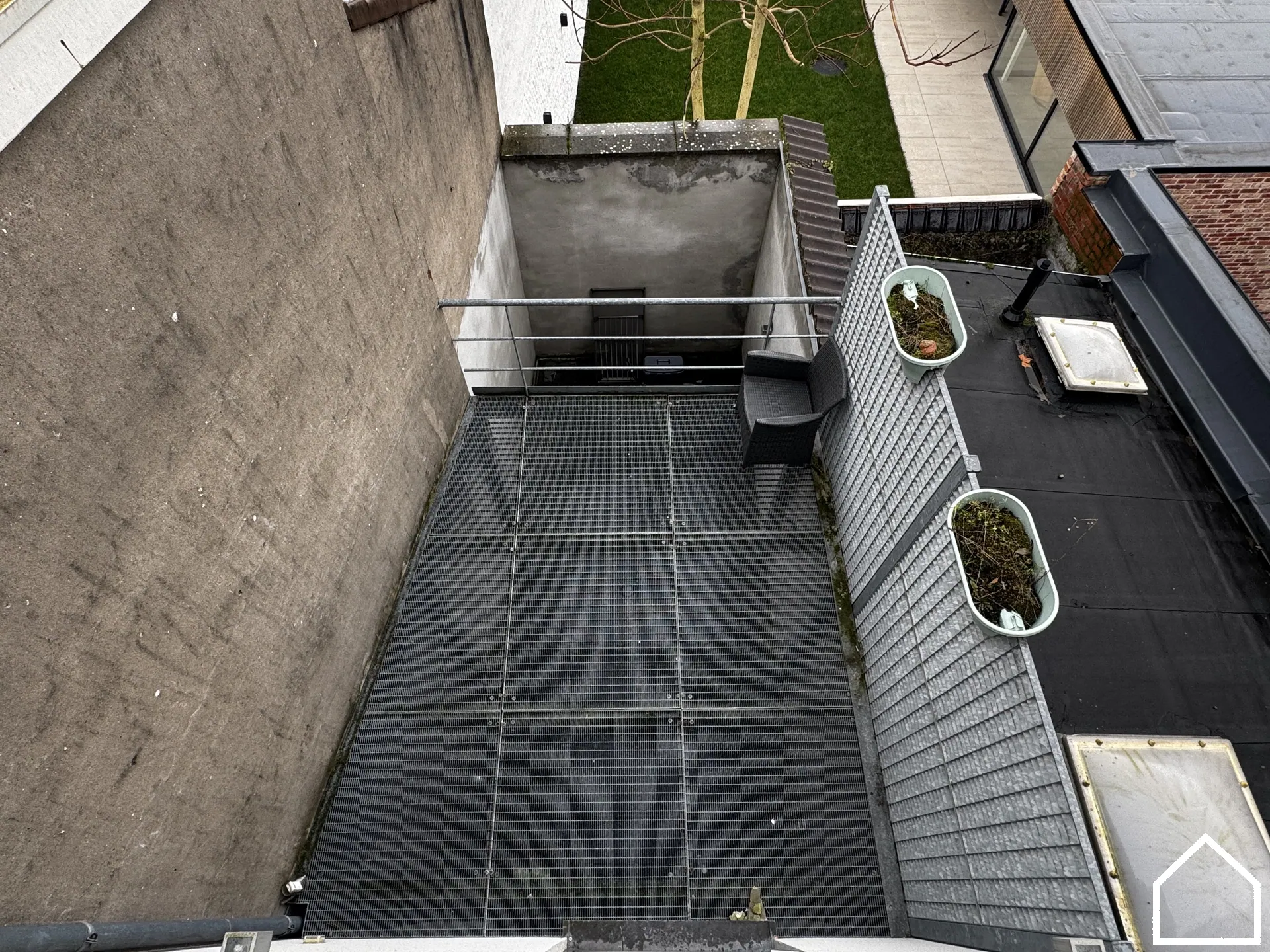 Buiten genieten kan op het ruime terras, zowel op het gelijkvloers (18m²) als op de eerste verdieping (9.90m²) — perfect om te ontspannen op elk moment van de dag.