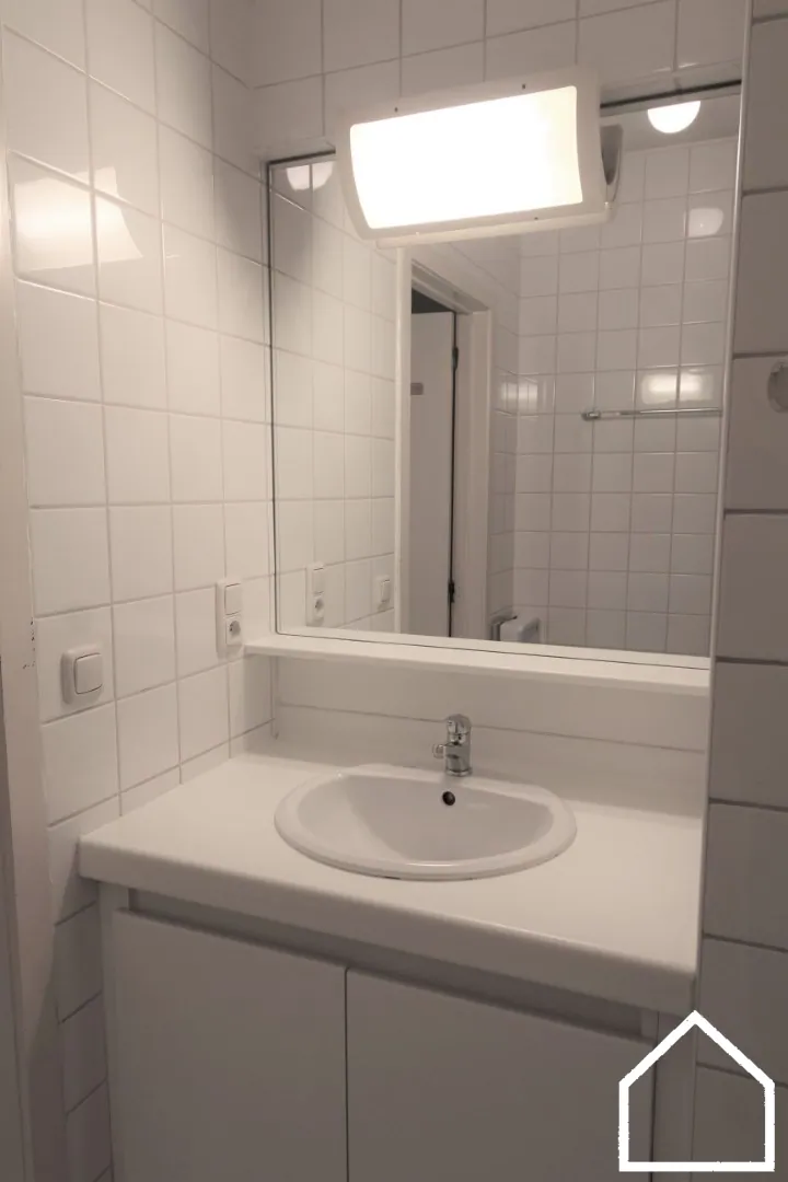 De inkom brengt u naar de living met aansluitend een uitgeruste keuken (elektrische kookplaat, oven en koelkast). De badkamer beschikt over een badkamermeubel met enkele lavabo, douche en toilet. Er is één slaapkamer. Verder is er ook nog een berging. Er is geen terras aanwezig.