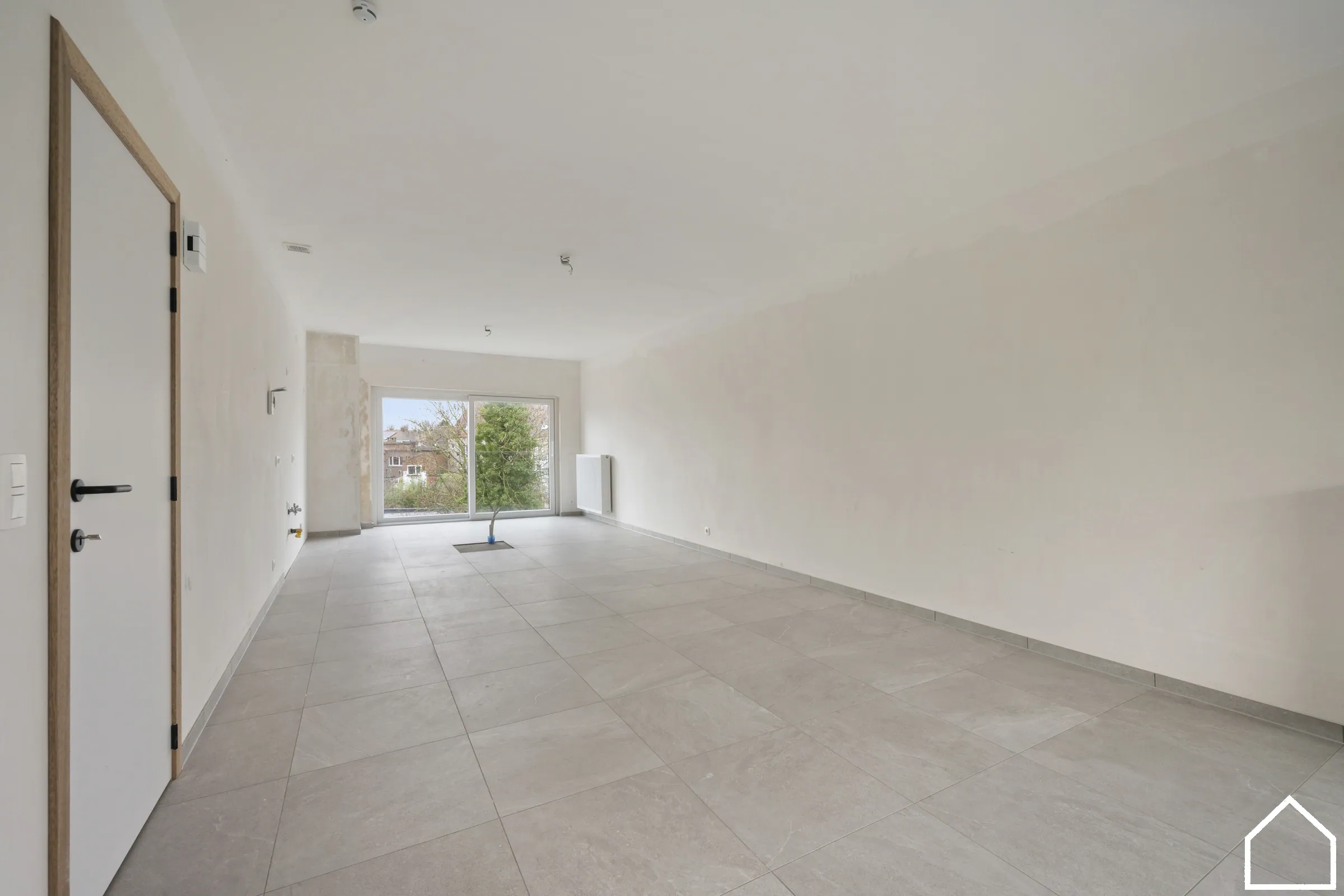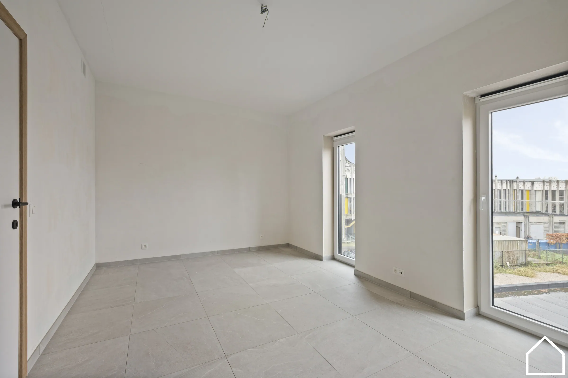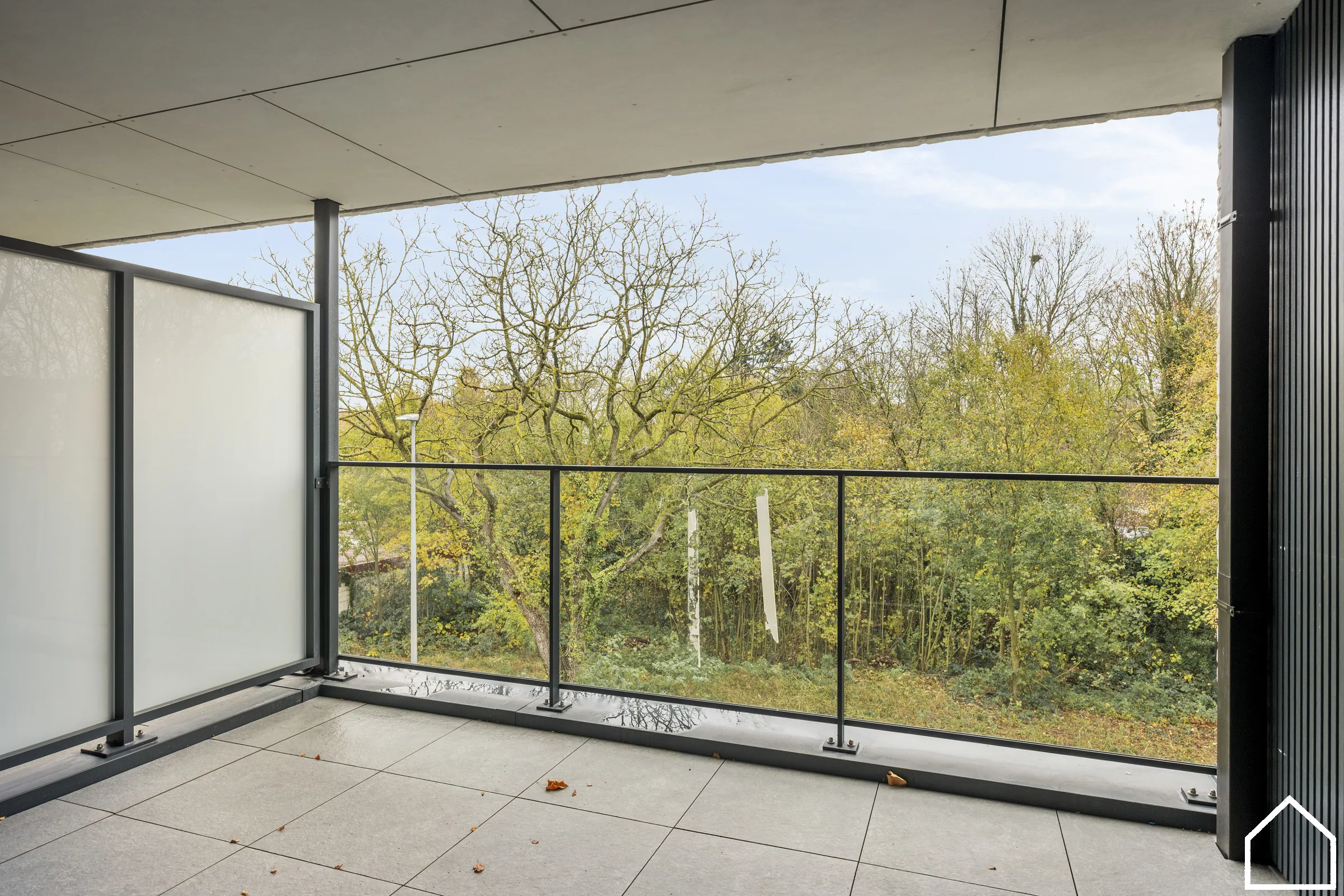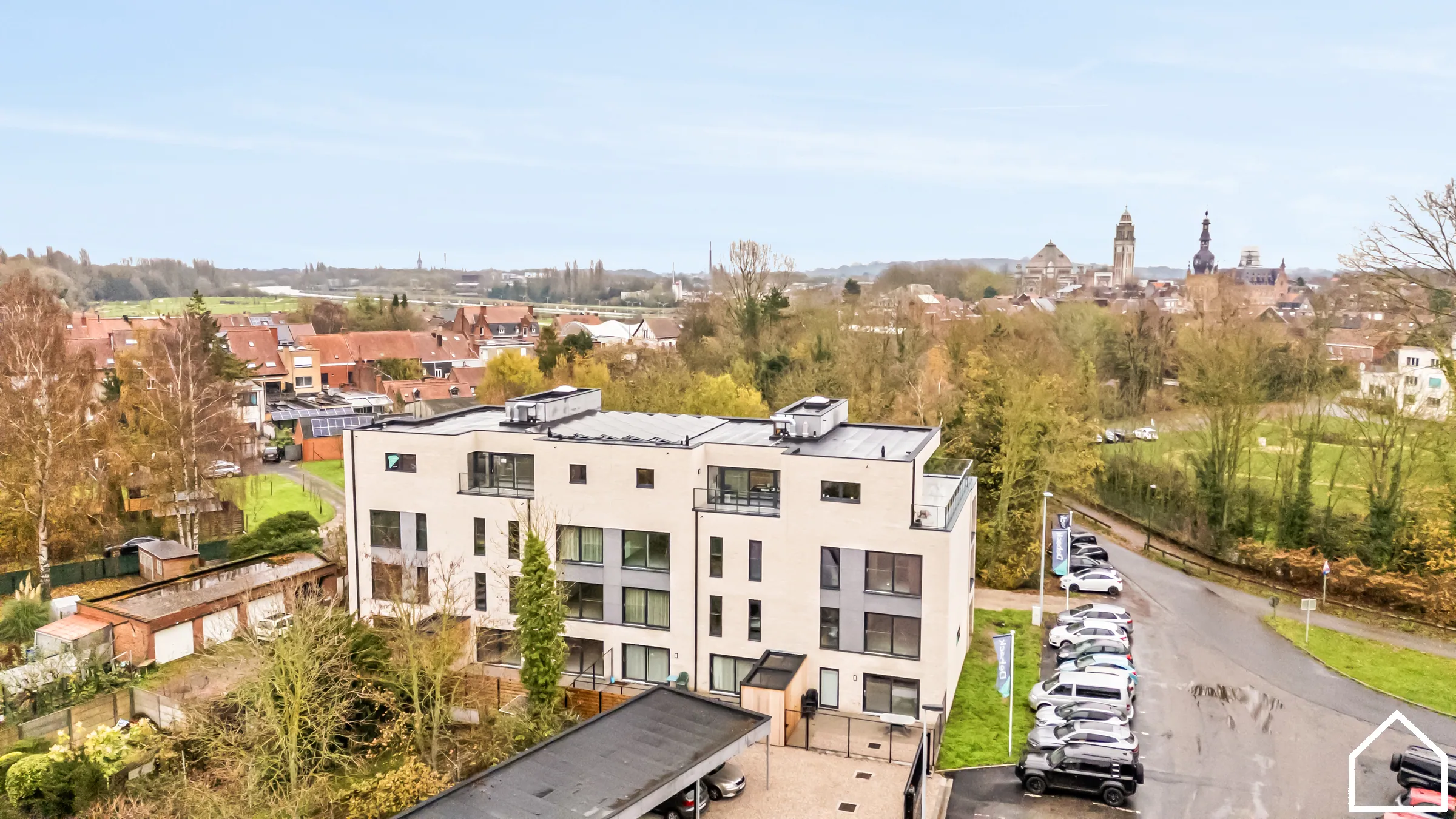 Appartement op de 2de verdieping (90m²) bestaande uit een inkomhal met vestiaire en toilet, een doucheruimte met lavabomeubel, een wasruimte, 2 slaapkamers, een ruime woonkamer met veel lichtinval en een ingerichte keuken, een terras van 11 m ².