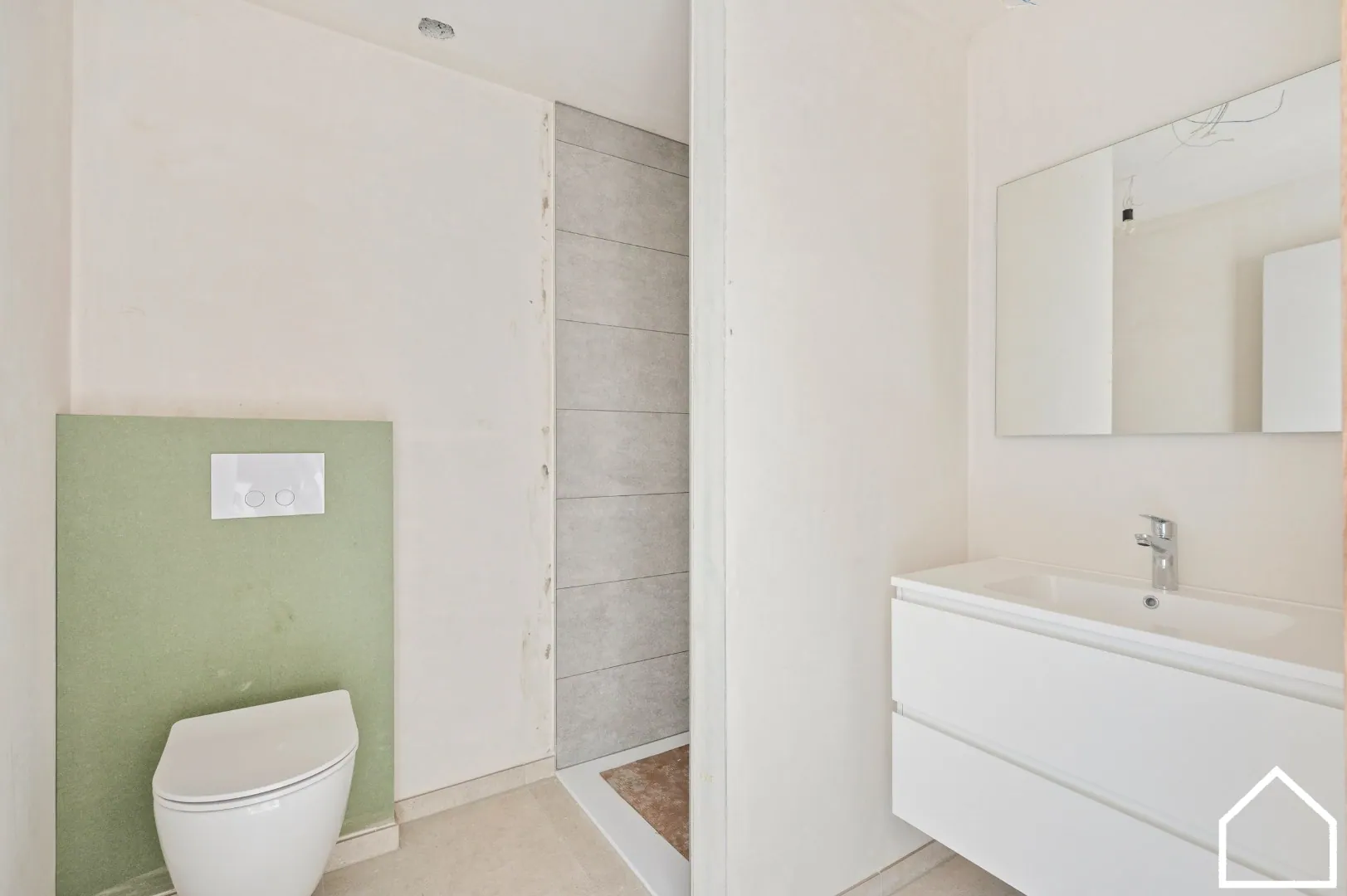 Verdieping 1: nachthal - 2 slaapkamers - badkamer met inloopdouche, wastafel en toilet + zolderruimte