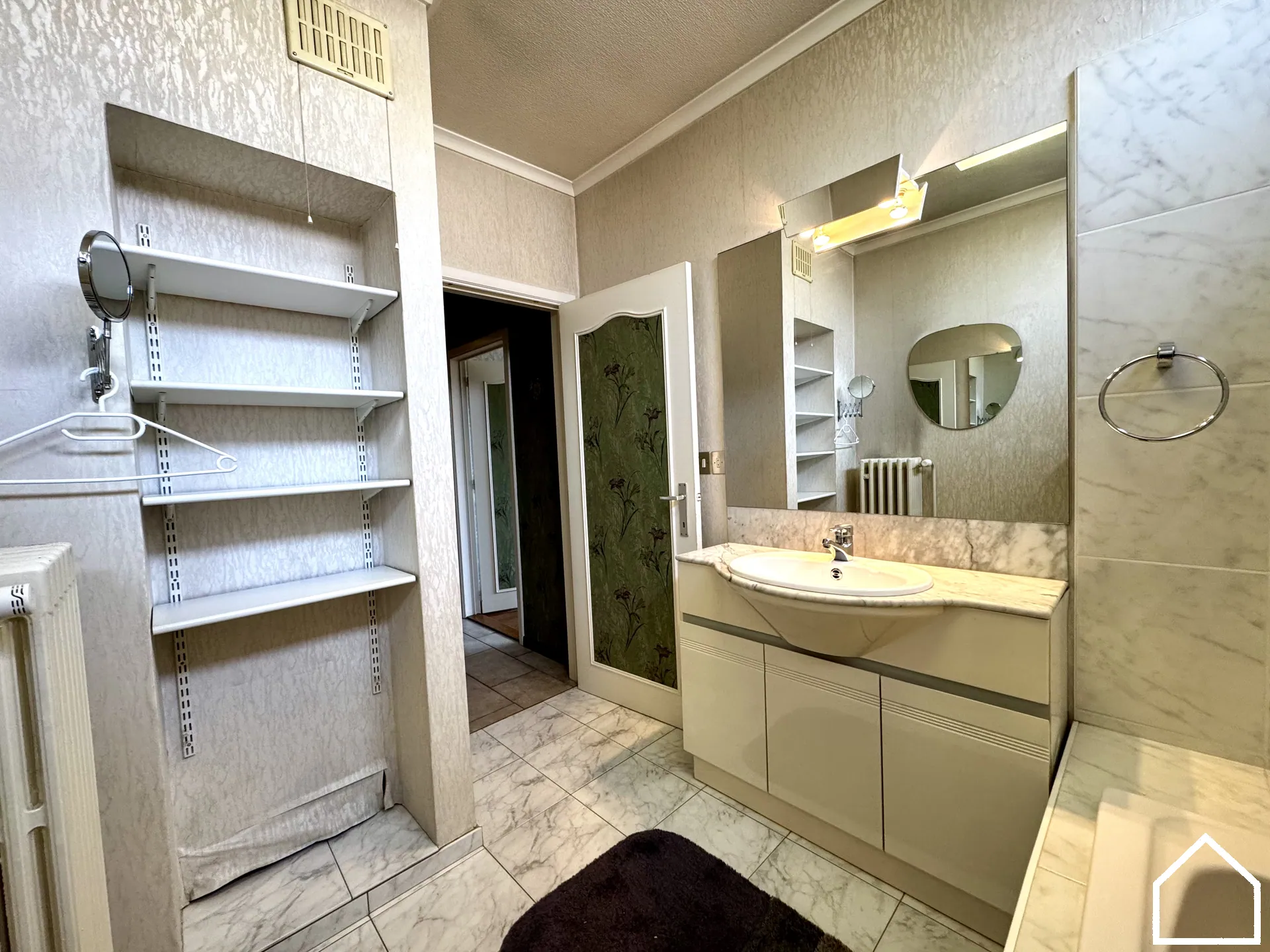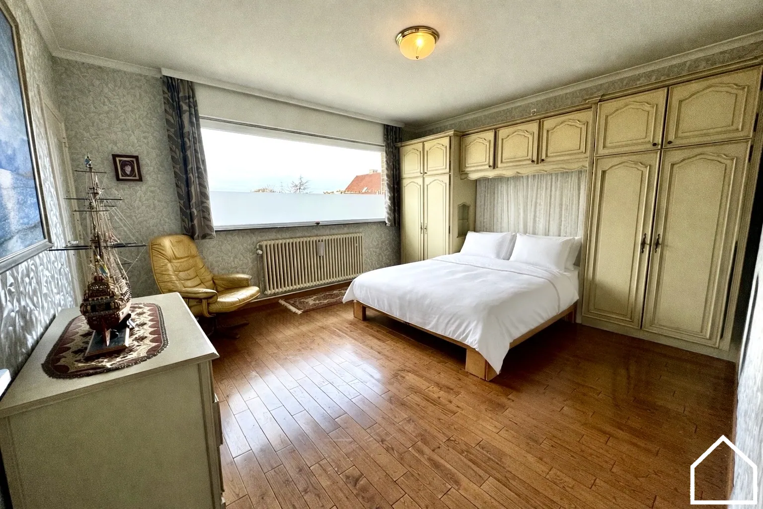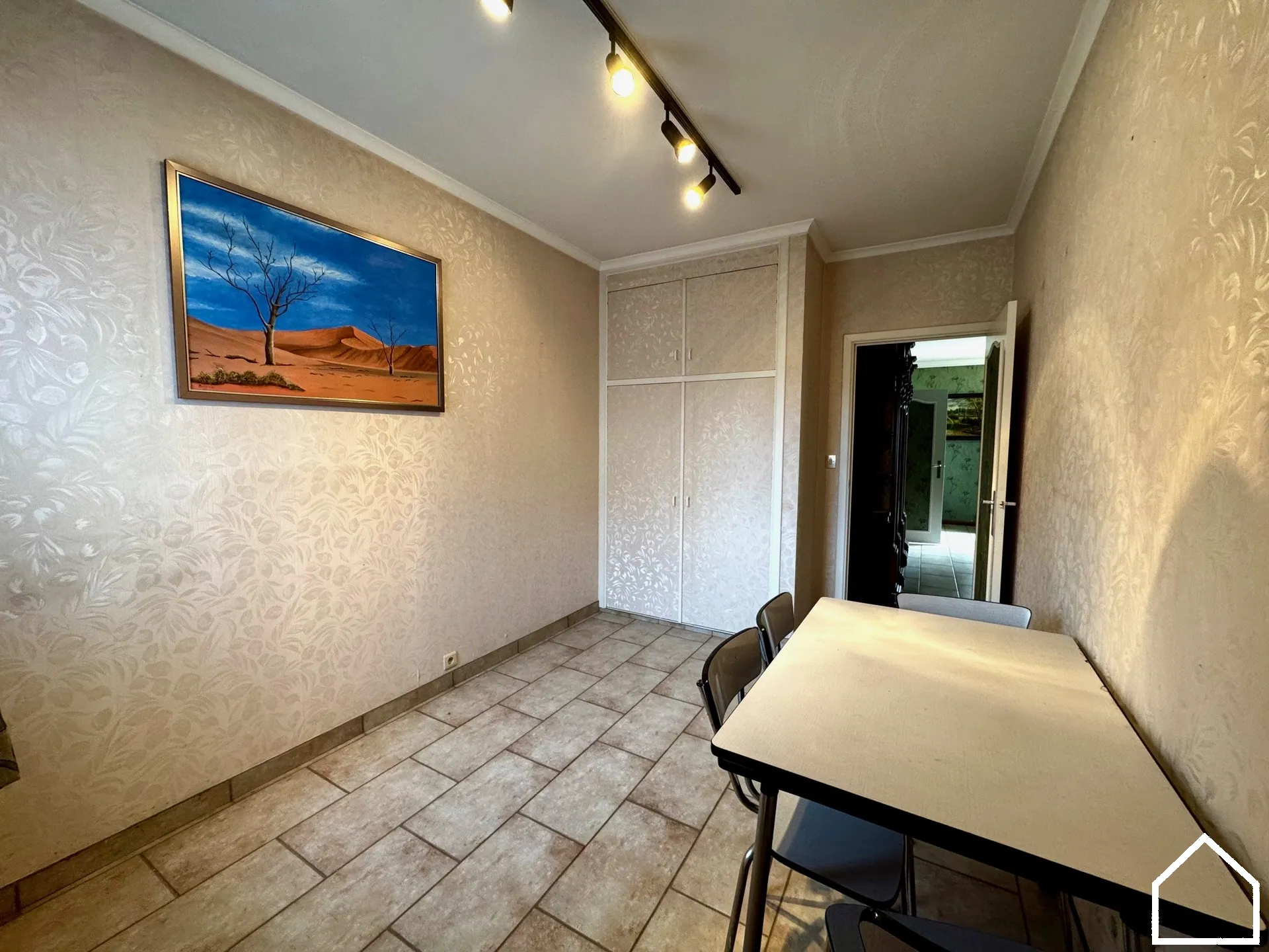 De inkomhal biedt eveneens toegang tot twee ruime slaapkamers, een derde kamer die kan ingericht worden als bureau, kinderkamer of hobbyruimte. Vanuit deze derde kamer bereikt u nog een bijkomende berging met aansluitend de garage. Verder vindt u via de inkomhal de badkamer, uitgerust met een douchebad en lavabomeubel, evenals een apart toilet.