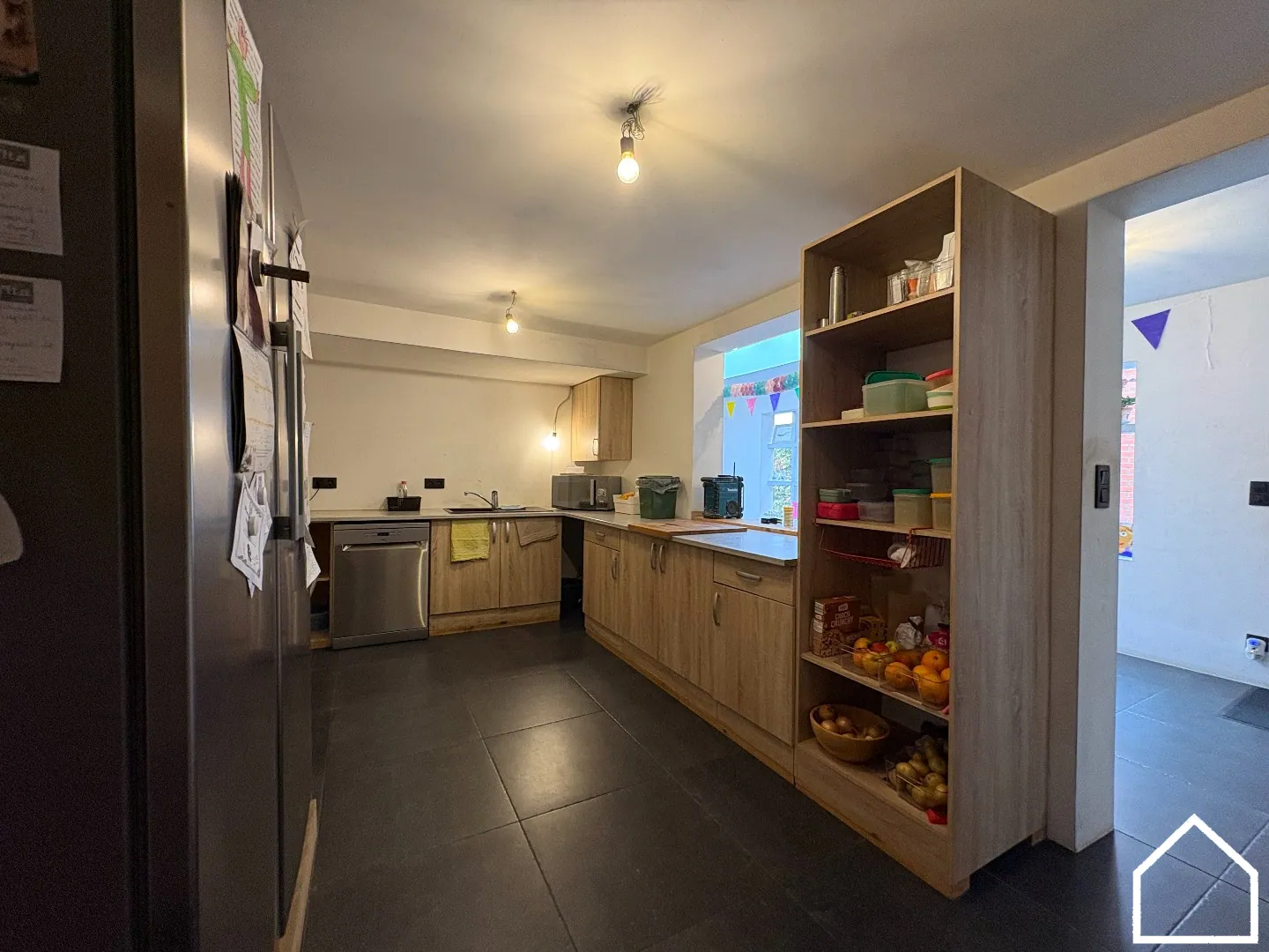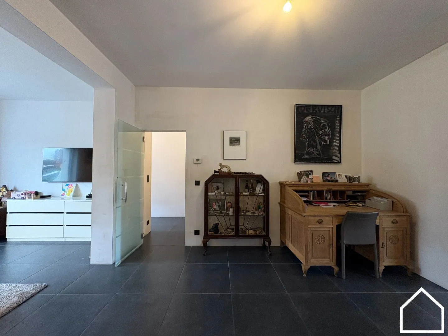 Via de inkomhal met open, authentieke traphal kom je terecht in de lichtrijke leefruimte met zithoek (14 m²) en eethoek (14 m²). Aansluitend bevindt zich de halfopen keuken (14 m²) met toegang tot een polyvalente ruimte (20 m²) met zicht op de tuin.