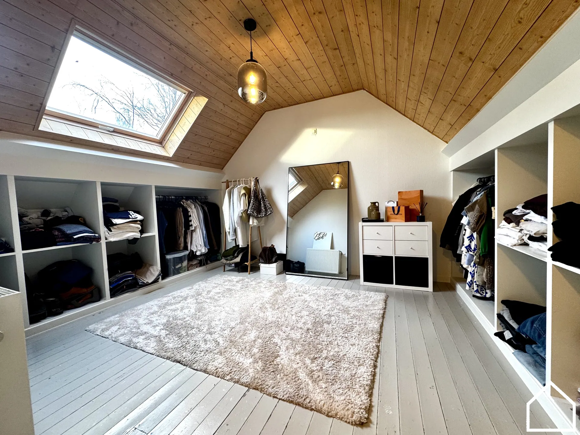 Ruime dressing of derde slaapkamer (18 m²) met ingemaakte kasten.