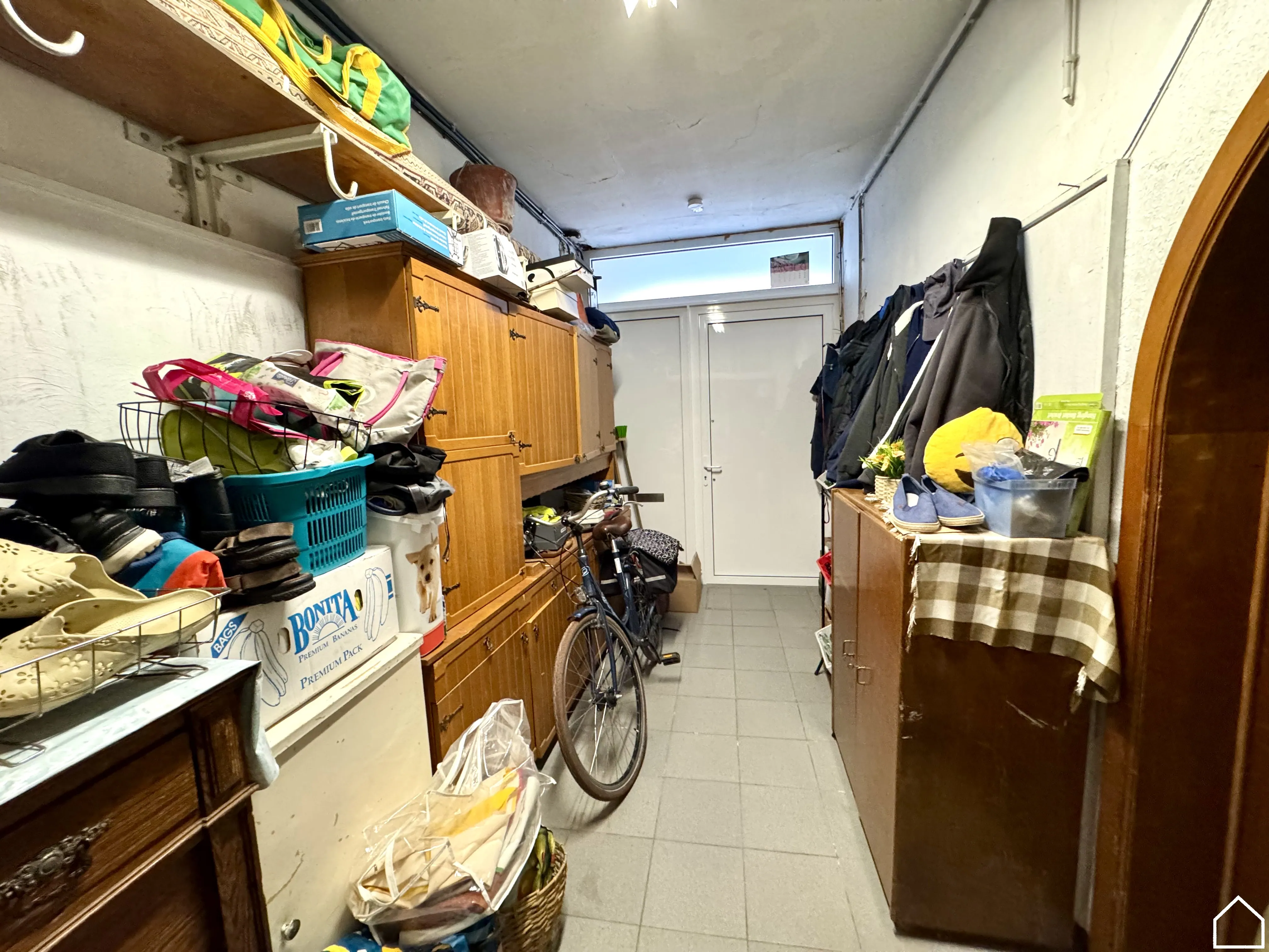 Gelijkvloers: bureau (12,35m²) - fietsgarage/berging (11,25m²) - ruime leefruimte (56,75m²) - open ingerichte keuken met kookplaat op aardgas, hetelucht oven, frigo, dubbele inox spoelbak (8,40m²) - badkamer met douchecel, enkele lavabomeubel en toilet (4m²) - berging/wasruimte (5,10m²) - keukenberging (6,15m) - tuin (193m²) waarvan 28.50m² terras - gemetste en geïsoleerde tuinberging (23m²)