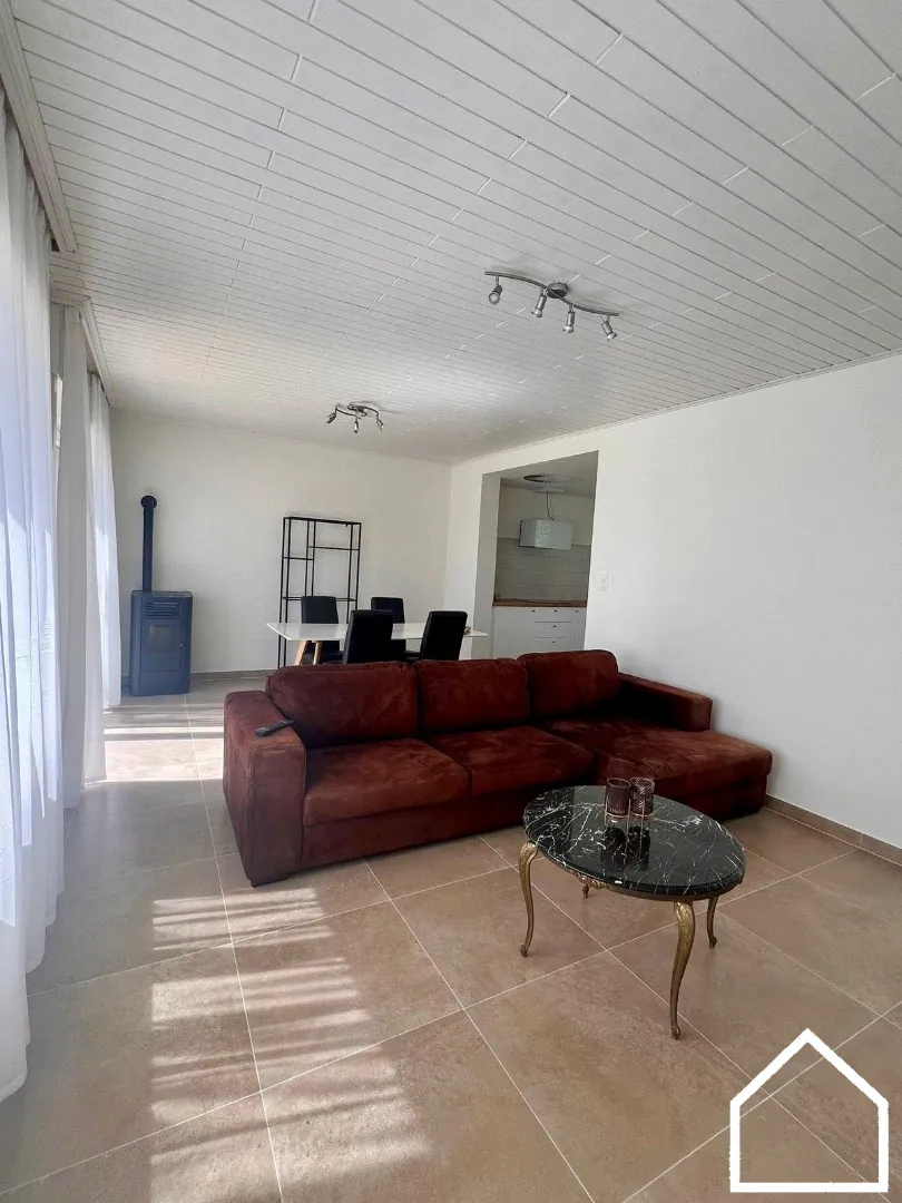 Glv: inkomhal met vestiaire (5.75m²) - living met gezellige pelletkachel (23m²) met open ingerichte keuken bestaande uit vaatwas, inductie-kookplaat, heteluchtoven, frigo en inox spoelbak (8.85m²) - gelijkvloerse kinder slaapkamer (6.55m²) - badkamer 1 met douche en lavabo (4.10m²) - apart toilet - wasberging (2.00m²) - voortuin met terras (22m²) - garagebox (3.00m x 4.50m)