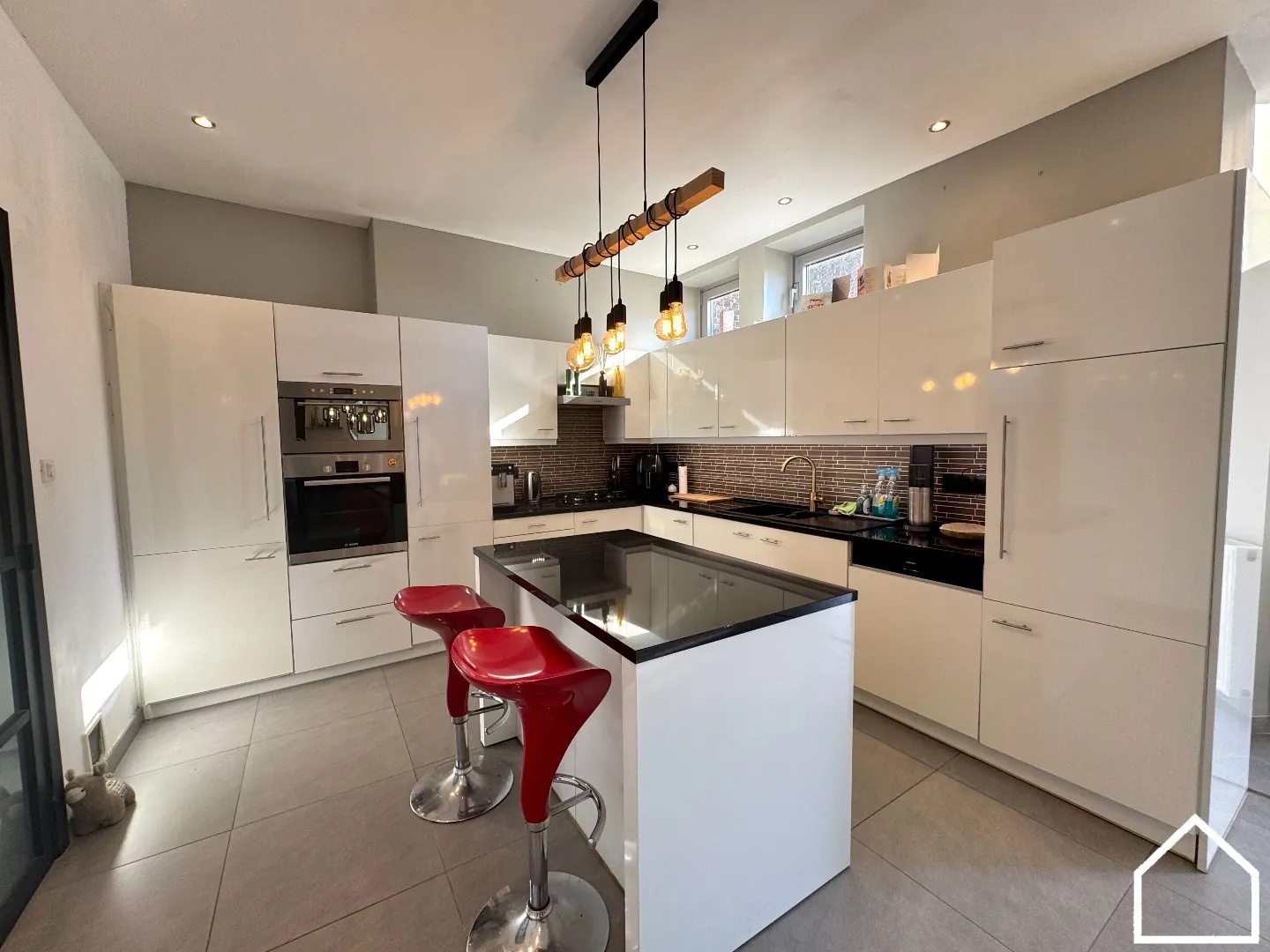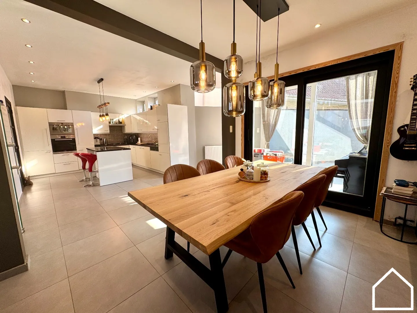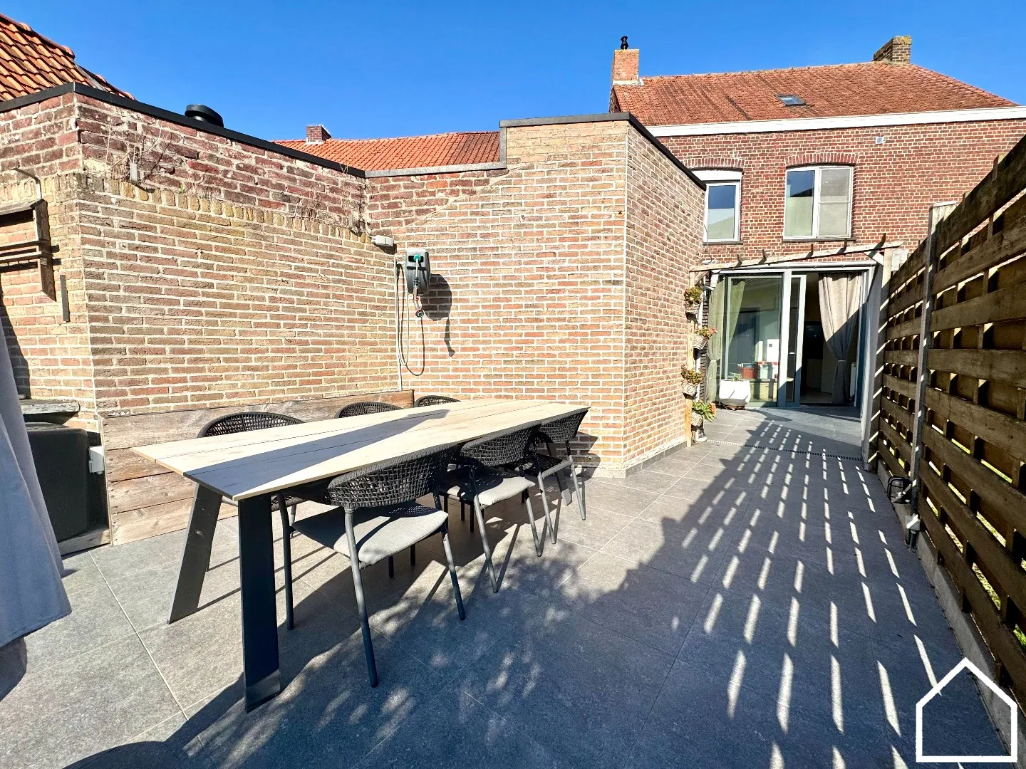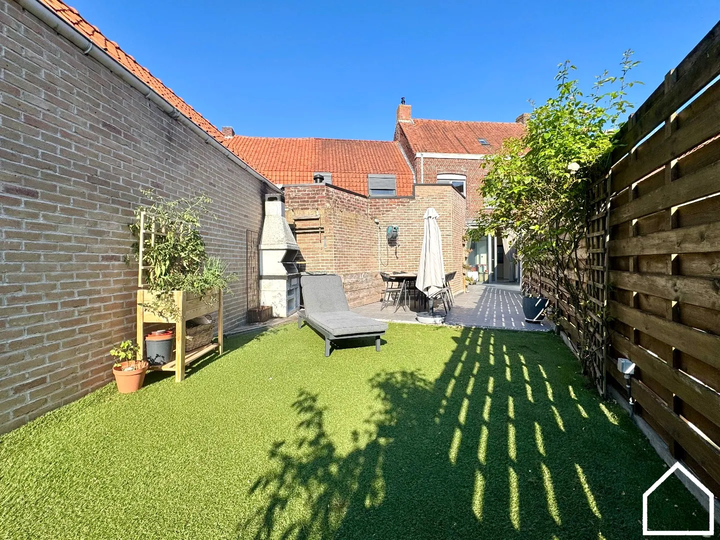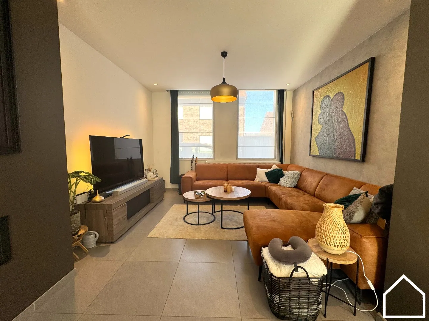 GLV: inkomhal (3,28m²) - leefruimte met gascasette en open keuken bestaande uit een keukeneiland, vaatwas, frigo, gasbekken, oven en microgolfoven (57m²) - garage/wasberging (8,88m²) - apart toilet - technische berging (1,49m²) - tuin met terras en buitenbarbecue (....m²)