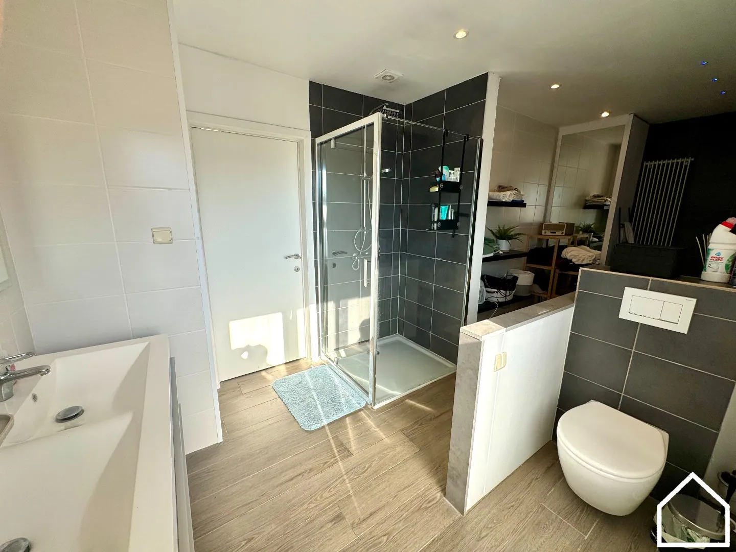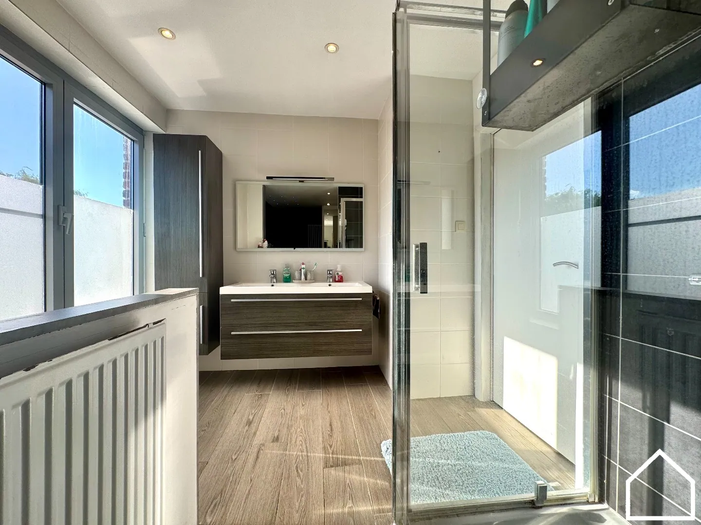 Verdieping 1: nachthal (5,32m²) - badkamer met douchecel, ingebouwd ligbad, dubbel wasmeubel en toilet (13,67m²) - 3 slaapkamers (14,18m² - 13,81m² - 12,57m²)