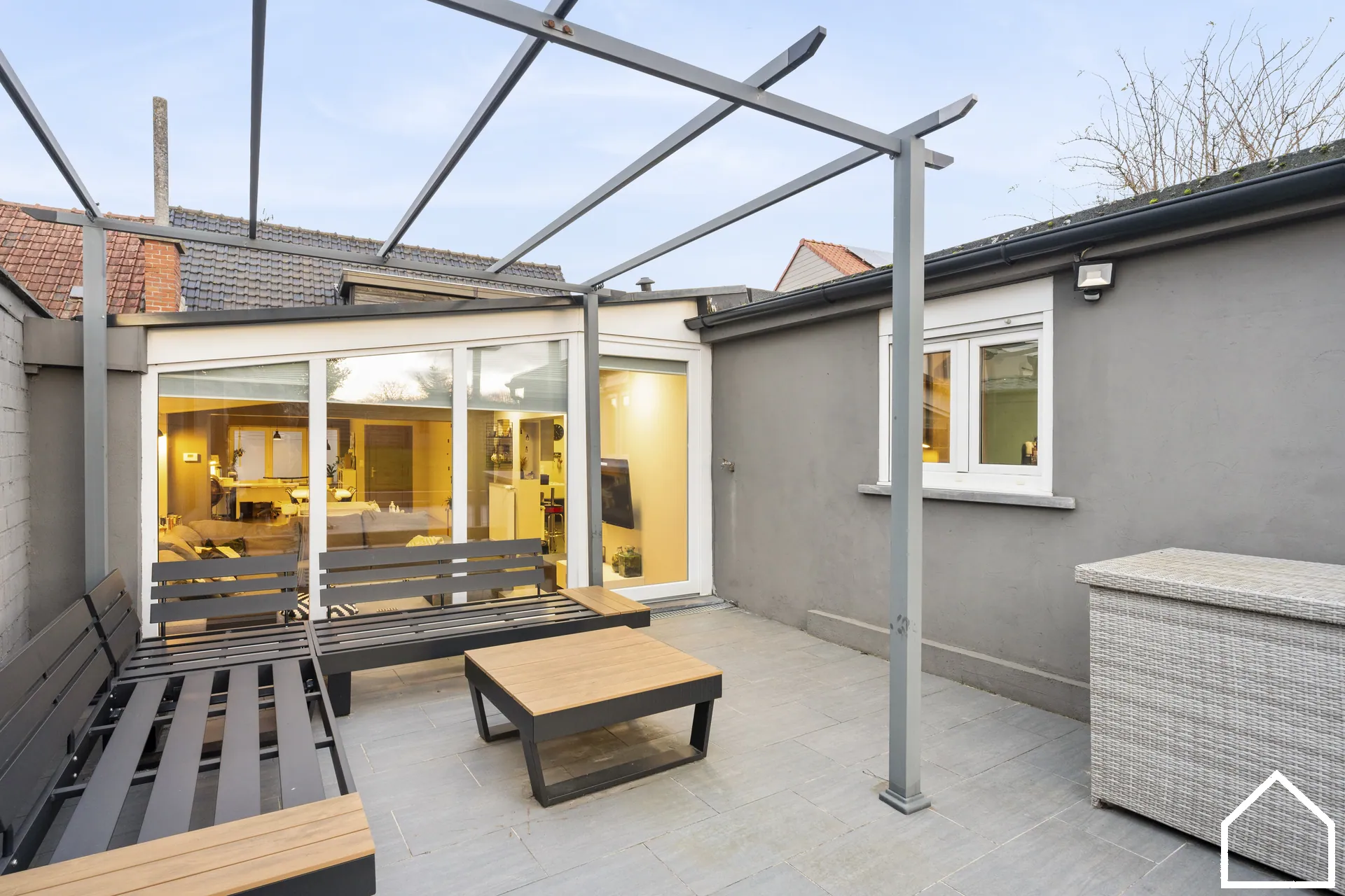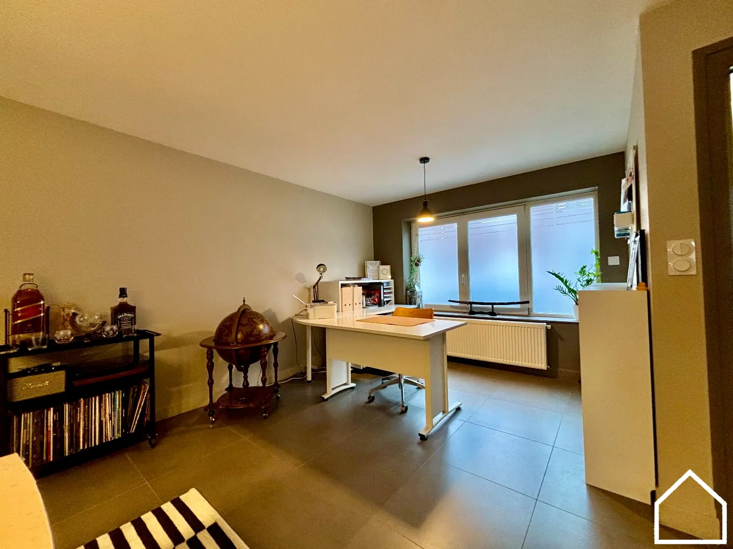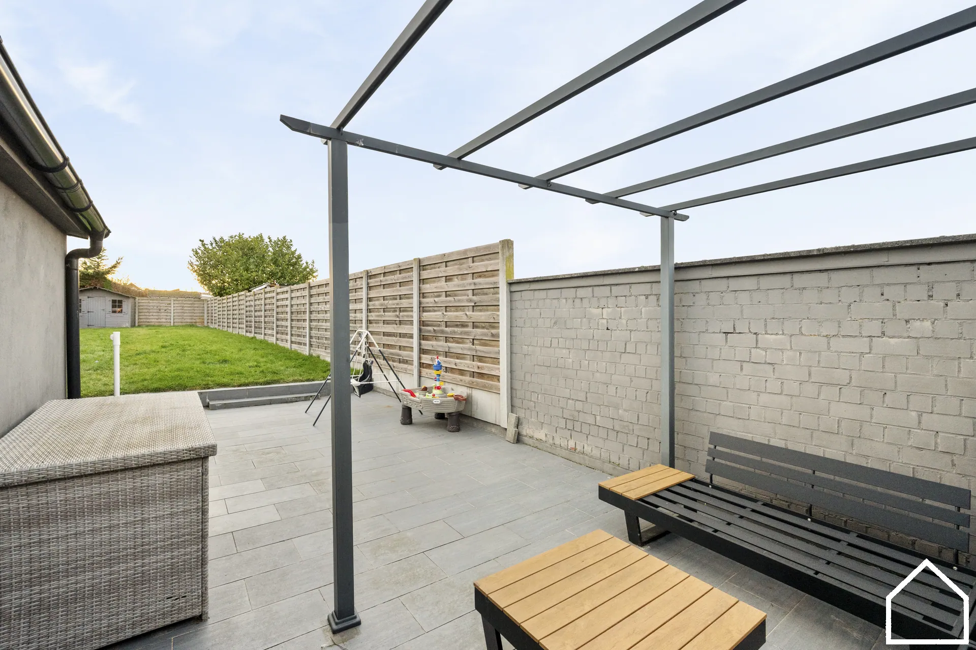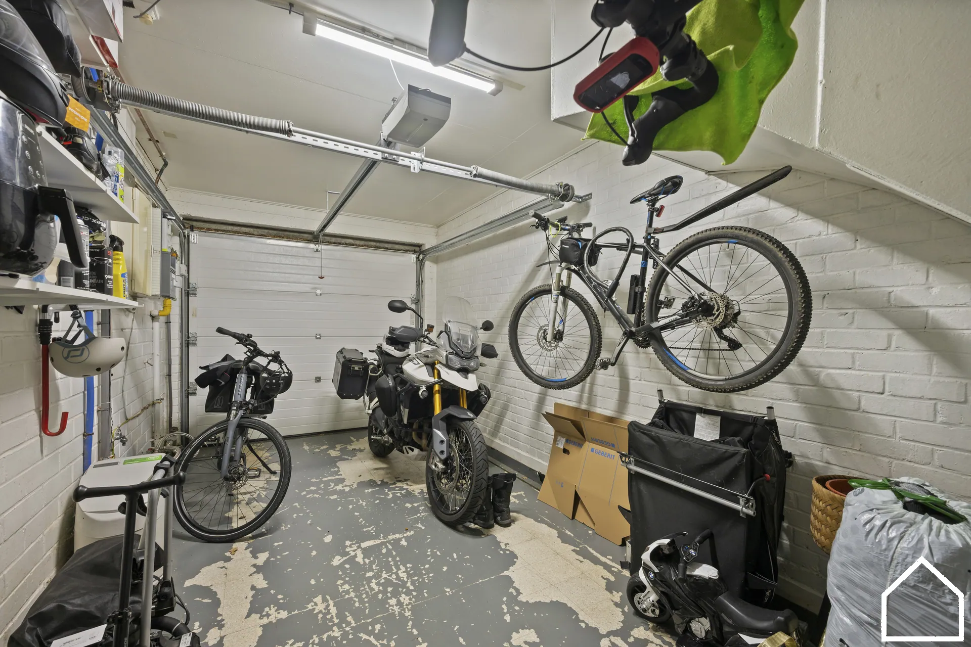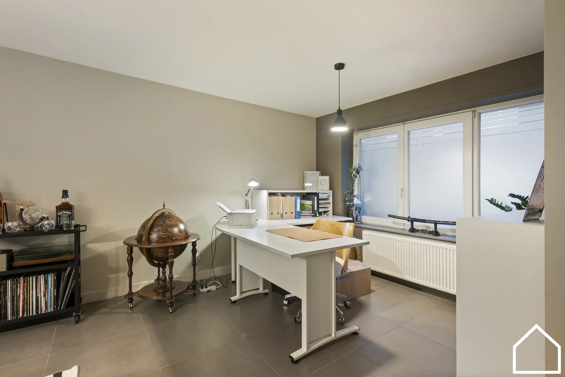GLV: Inkomhal (2,6m²) - open bureauruimte (7m²) - leefruimte (53,9m²) - keuken met microgolfoven, heteluchtoven, vaatwasser, dubbele inox spoelbak en inductiekookplaat (13,32m²) - apart toilet met handwasbakje - berging/technische ruimte (4,81m²) - badkamer 1 met inloopdouche, enkel wasmeubel (3,14m²) - slaapkamer 1 (13,06m²) - garage met automatische sectionale poort (19m²) - terras (46m²) - tuin (207m²) - tuinhuis (8m²)