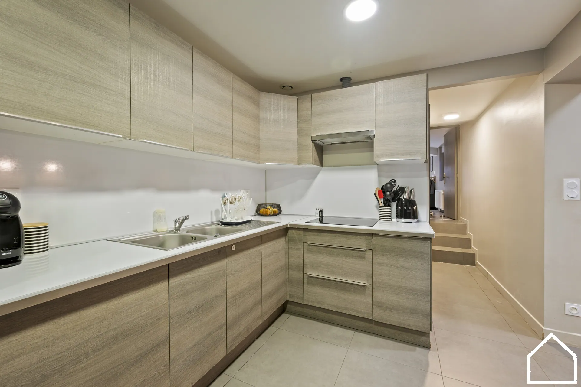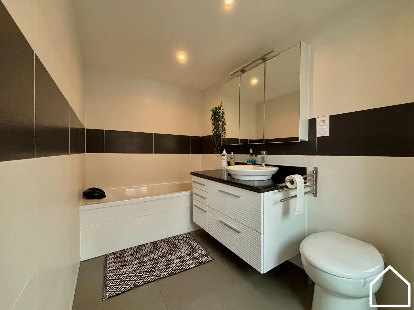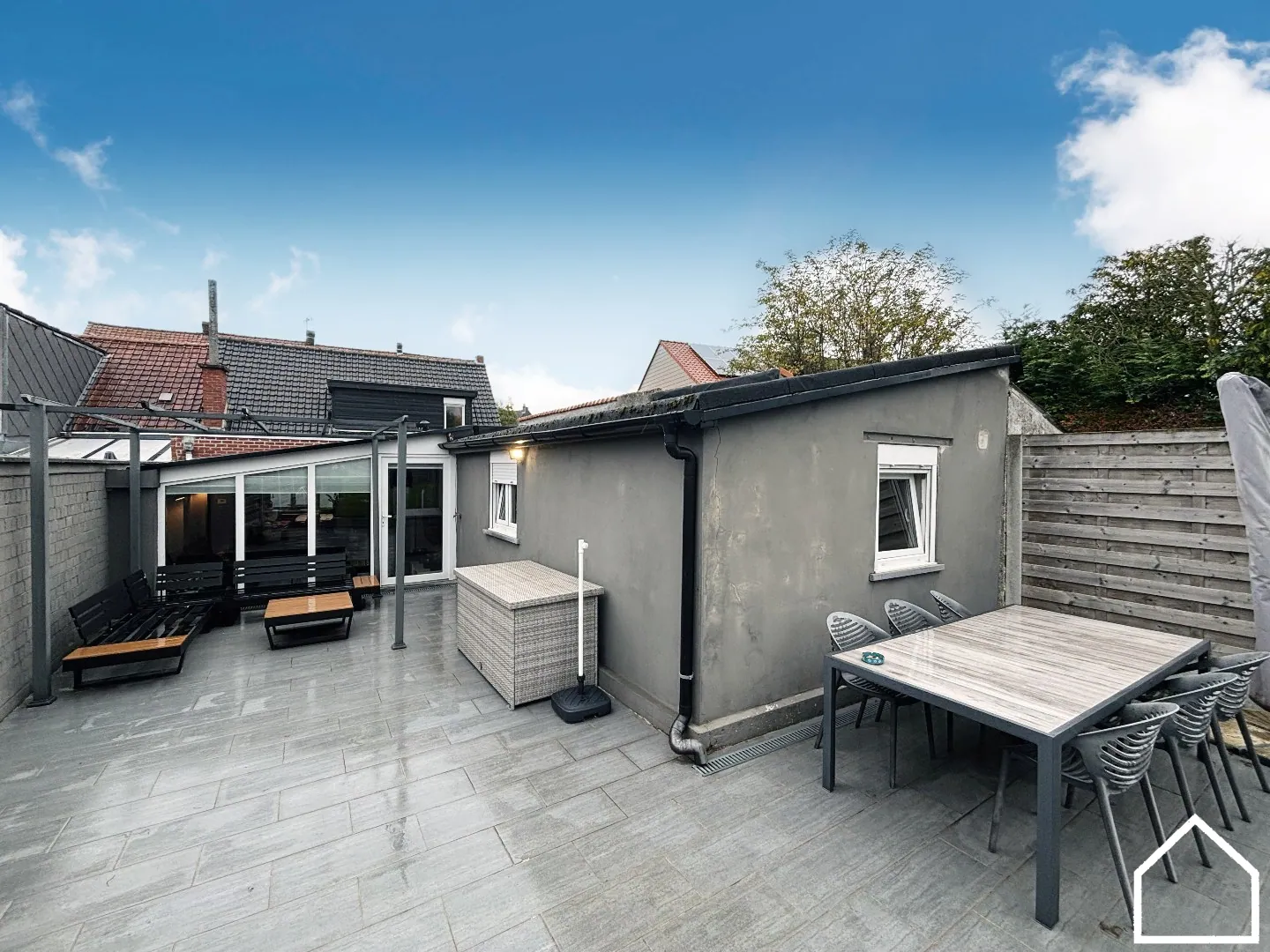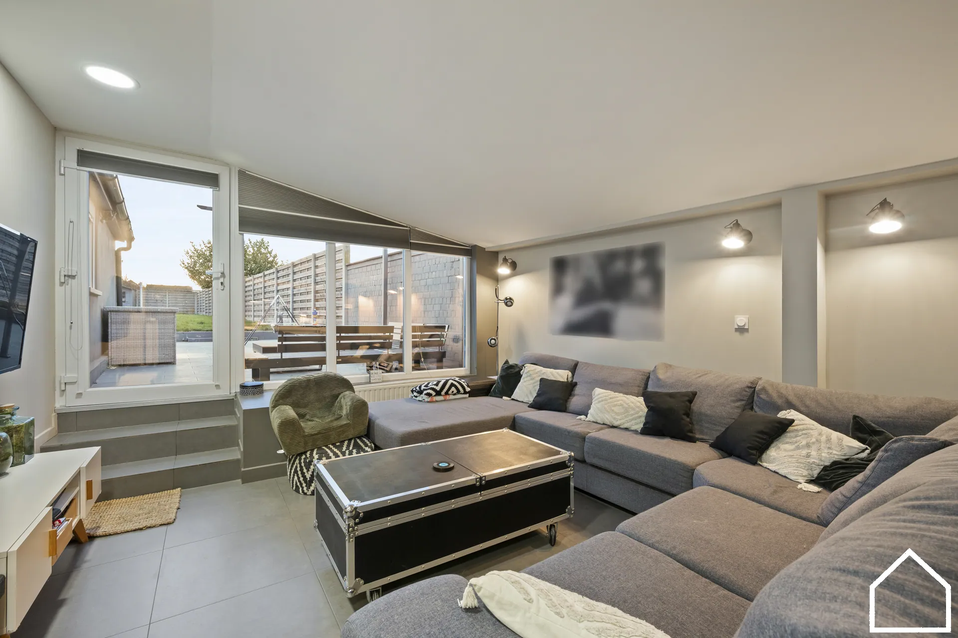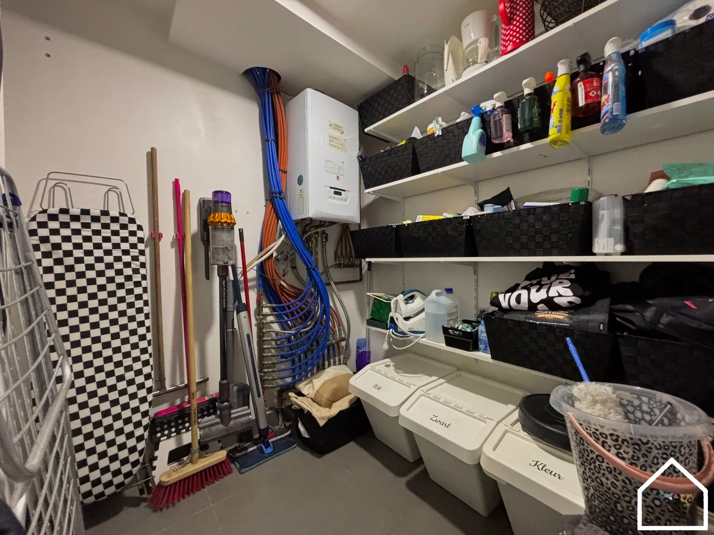 GLV: Inkomhal (2,6m²) - open bureauruimte (7m²) - leefruimte (53,9m²) - keuken met microgolfoven, heteluchtoven, vaatwasser, dubbele inox spoelbak en inductiekookplaat (13,32m²) - apart toilet met handwasbakje - berging/technische ruimte (4,81m²) - badkamer 1 met inloopdouche, enkel wasmeubel (3,14m²) - slaapkamer 1 (13,06m²) - garage met automatische sectionale poort (19m²) - terras (46m²) - tuin (207m²) - tuinhuis (8m²)