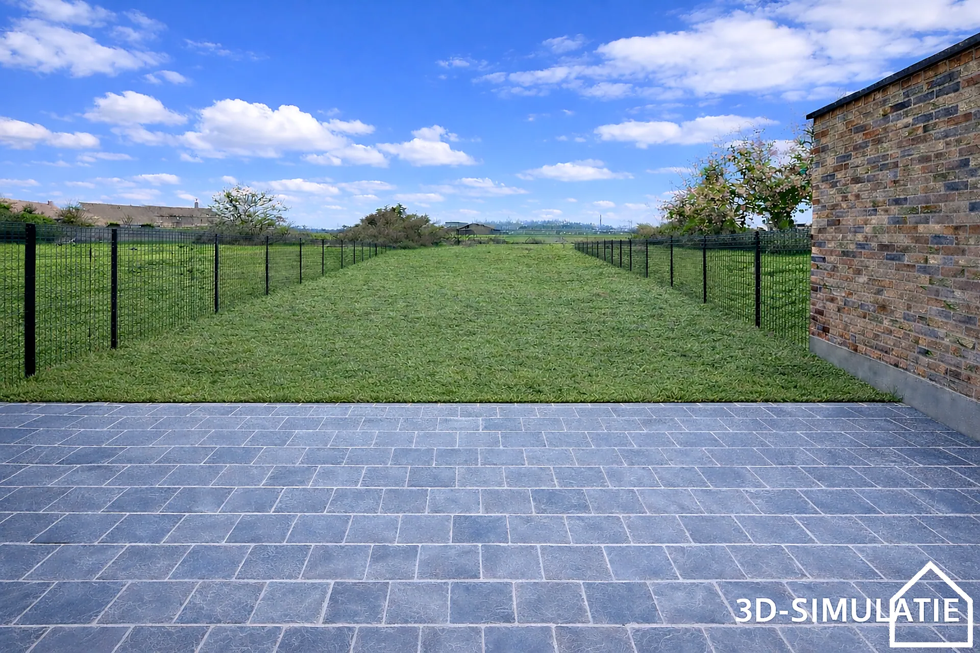De verkoper zal op zijn kosten nog de oprit aanleggen, een terras voorzien in de tuin, gras inzaaien en een tuinafsluiting voorzien in samenspraak met de koper volgens een vastgelegd budget.